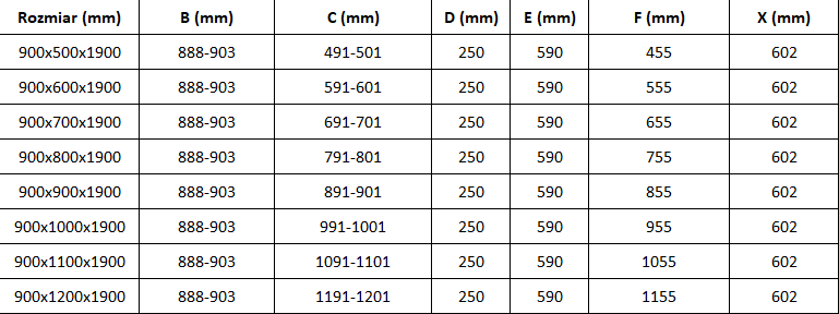 Rozmiar: 90x90 cm (drzwi 90 cm, ścianka 90 cm)