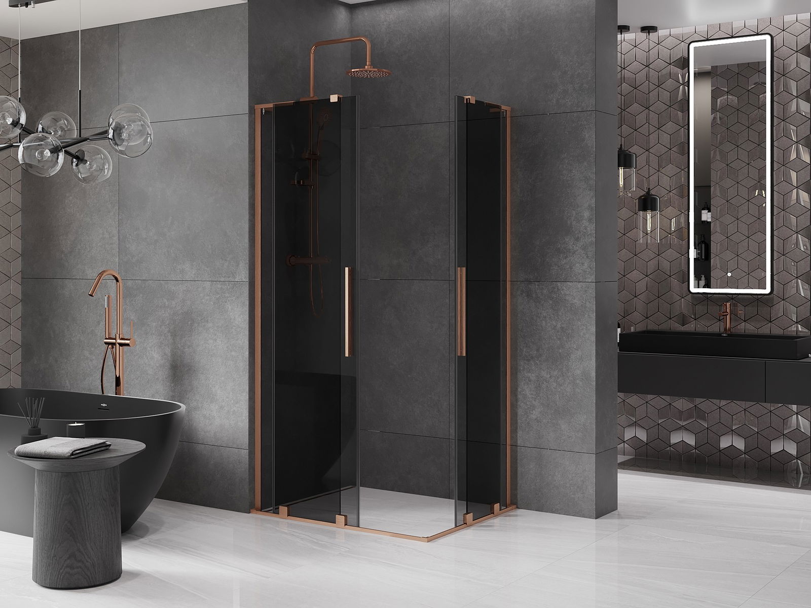 Mexen Velar L Duo kabina prysznicowa rozsuwana 100 x 90 cm, grafit, miedź szczotkowana - 871-100-090-02-43-65