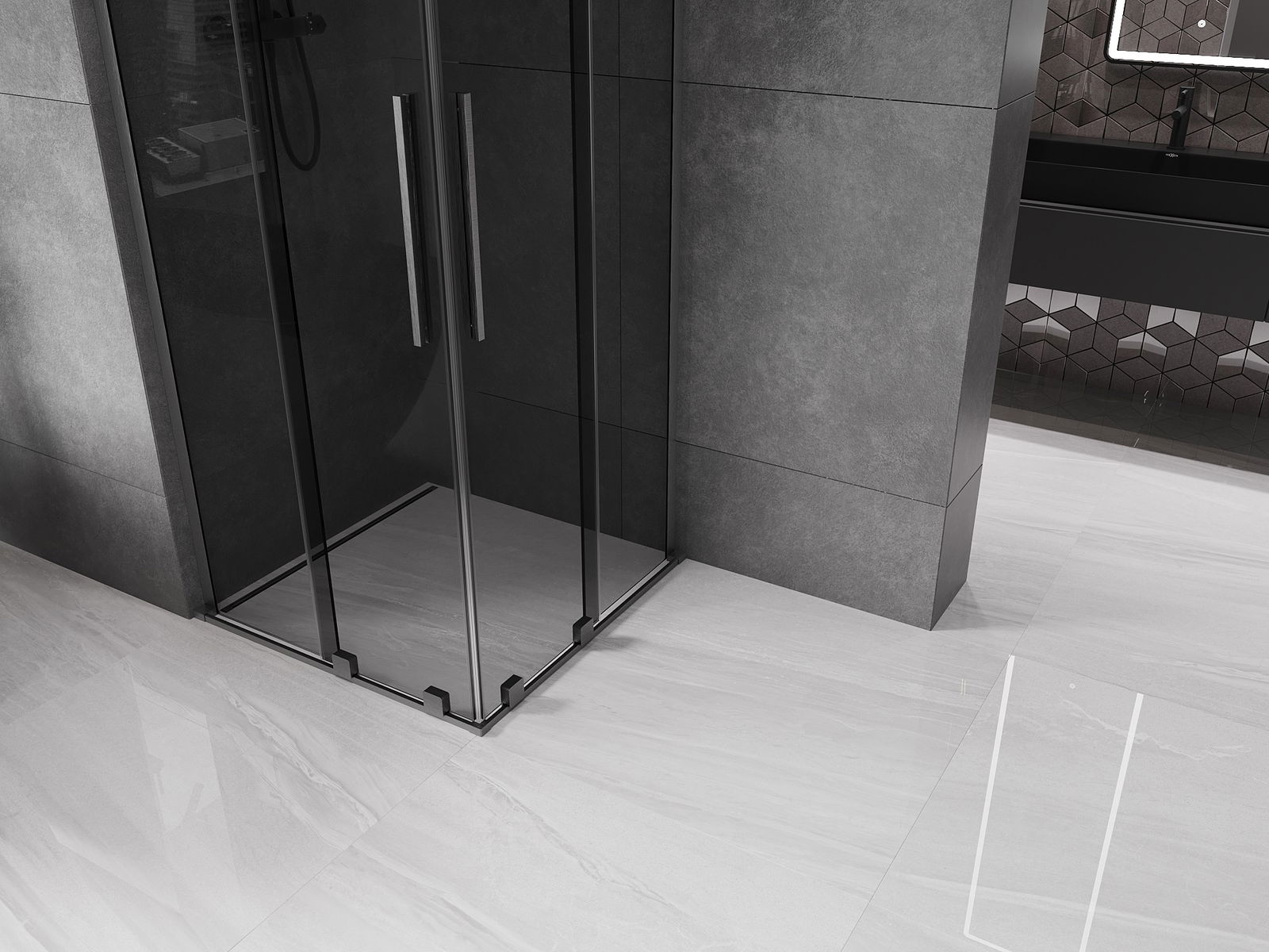 Mexen Velar L Duo kabina prysznicowa rozsuwana 80 x 80 cm, grafit, gun gray szczotkowany - 871-080-080-02-43-66