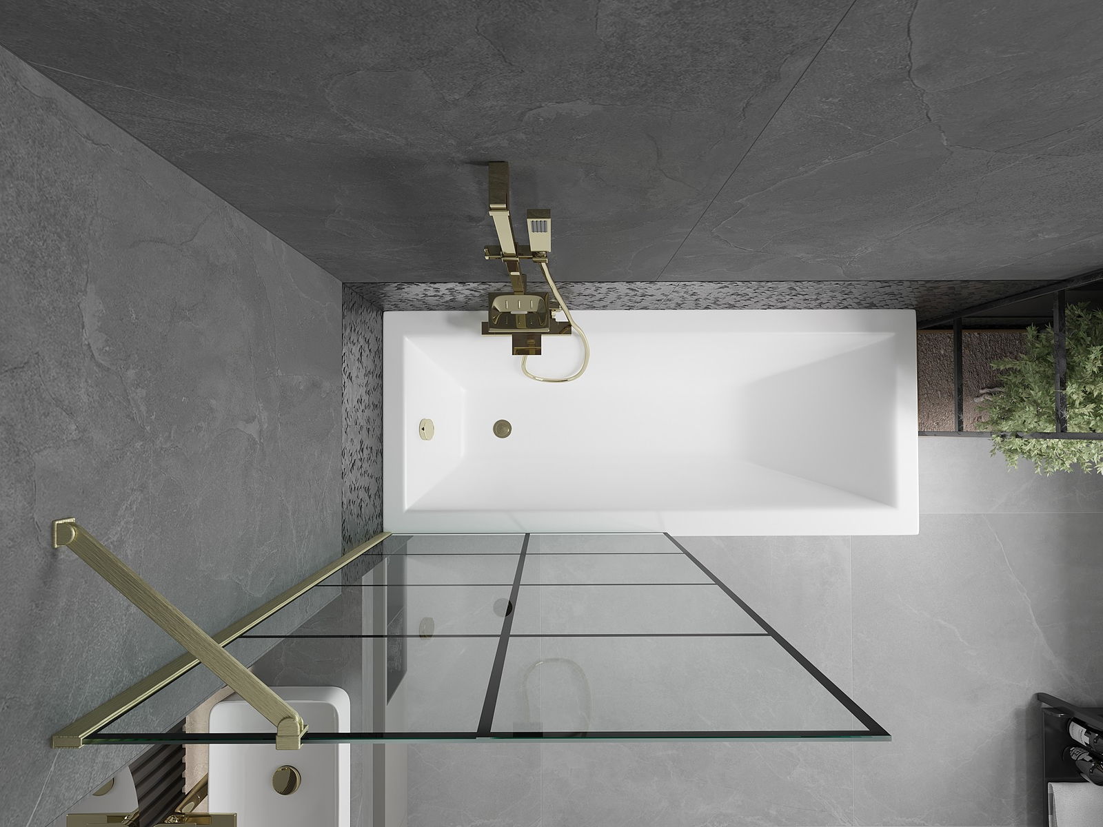 Mexen Next parawan nawannowy 1-skrzydłowy 90 x 150 cm, czarna kratka, złoty szczotkowany - 895-090-000-00-77-55