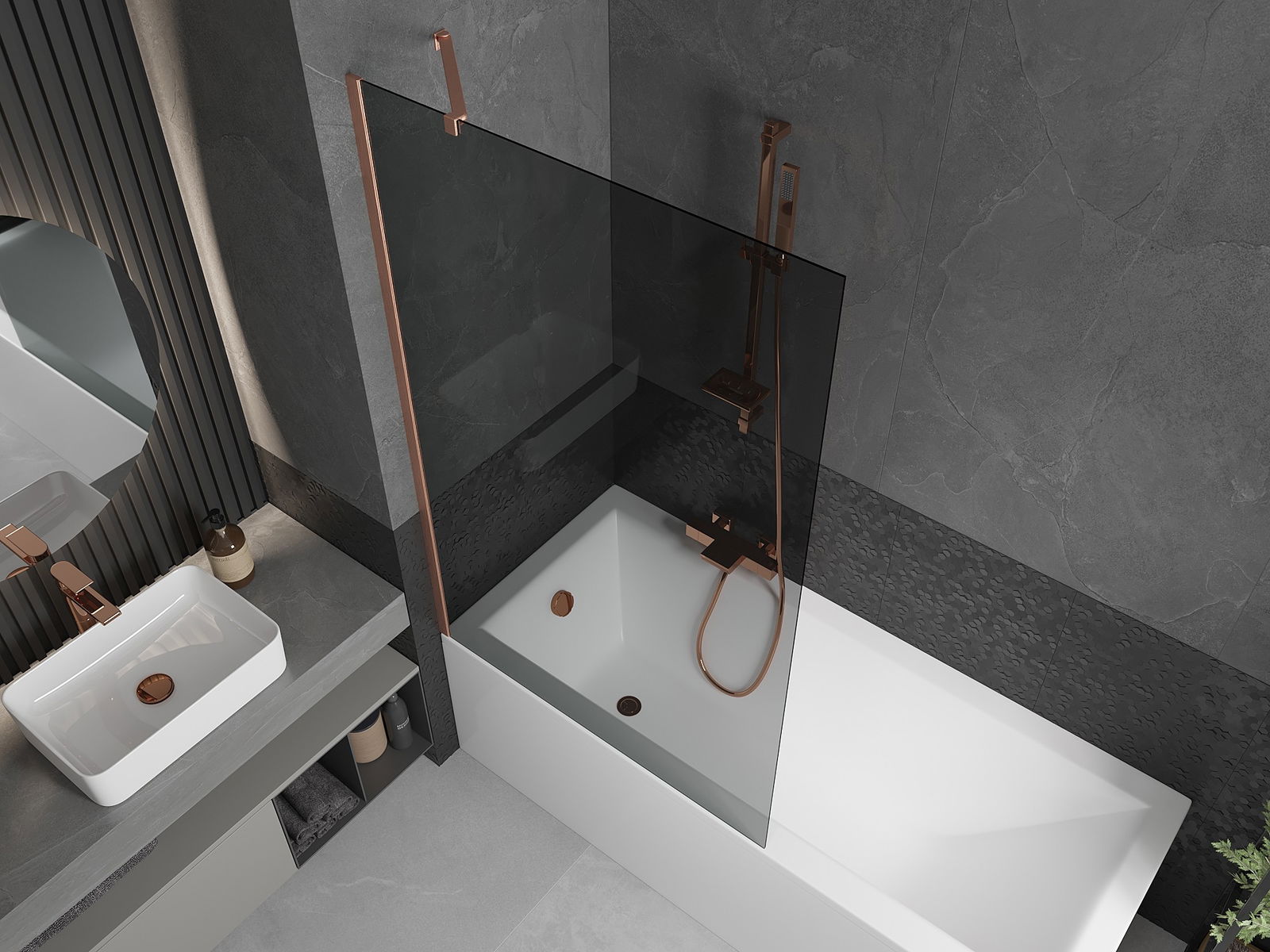 Mexen Next parawan nawannowy 1-skrzydłowy 100 x 150 cm, grafit, miedź szczotkowana - 895-100-000-00-40-65