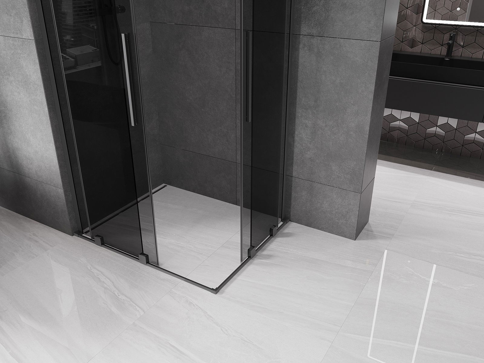Dzięki zastosowaniu uniwersalnego systemu mocowania, drzwi prysznicowe mogą zostać zamontowane z prawej lub z lewej strony, zależnie od potrzeb. Dzięki temu możesz z łatwością zaprojektować prysznic dopasowany do przestrzeni łazienki.