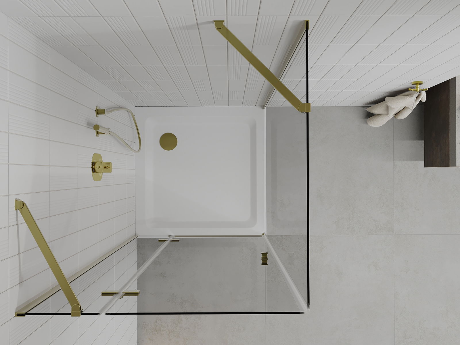Mexen Roma kabina prysznicowa uchylna 90 x 90 cm, transparent, złota + brodzik Flat - 854-090-090-50-00-4010