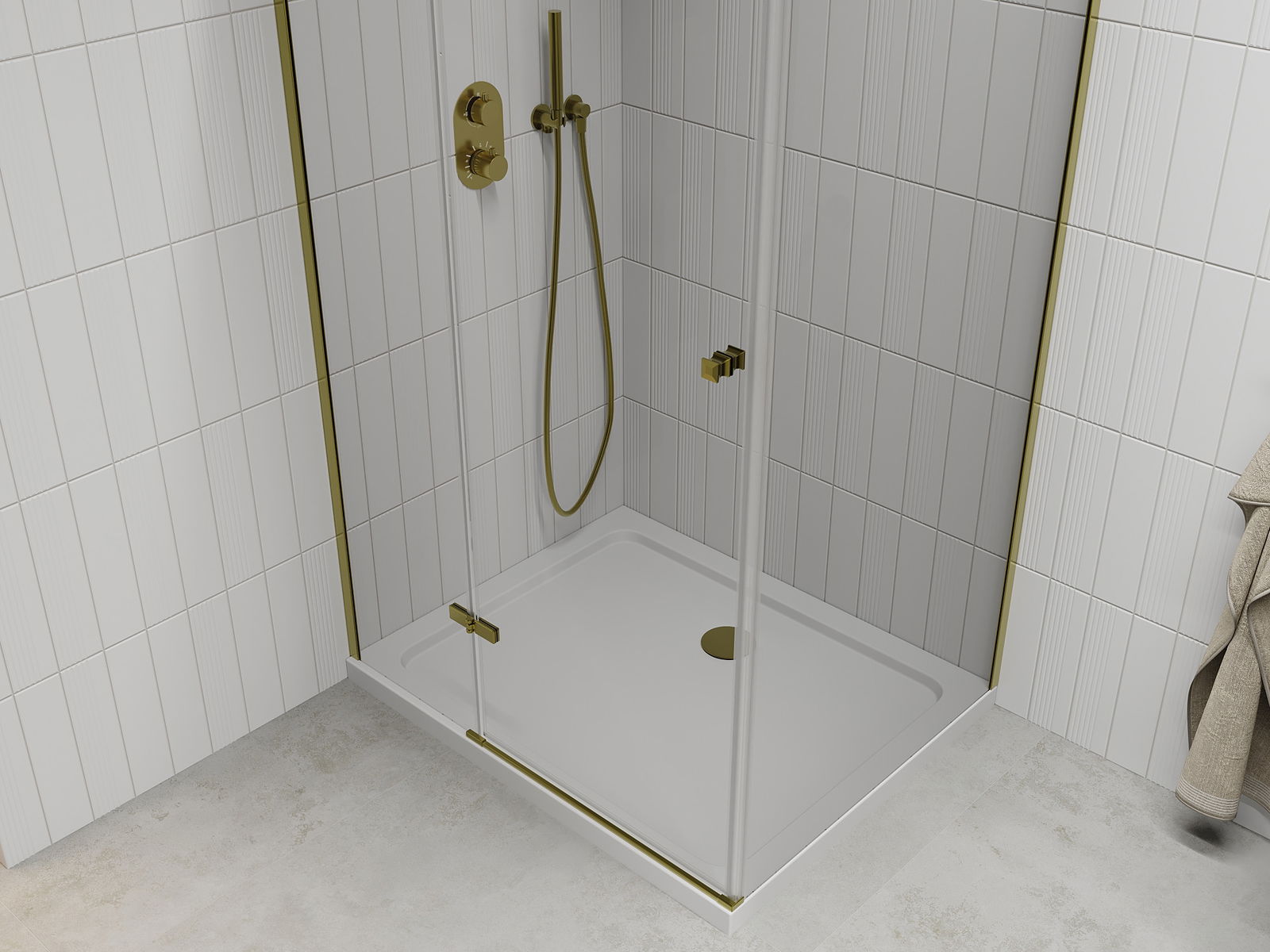 Mexen Roma kabina prysznicowa uchylna 110 x 80 cm, transparent, złota + brodzik Flat - 854-110-080-50-00-4010