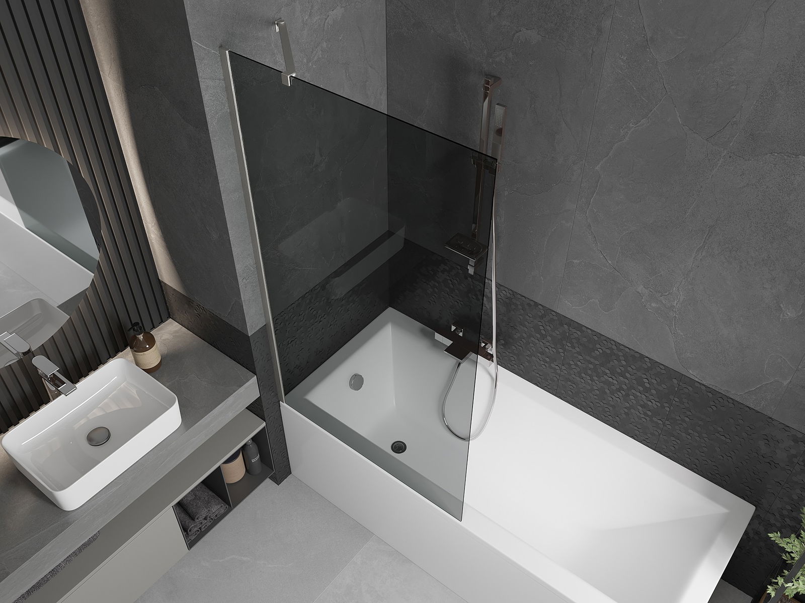 Dzięki zastosowaniu uniwersalnego systemu mocowania, parawan może być zamontowany z prawej lub z lewej strony, zależnie od potrzeb. W ten sposób możesz z łatwością zaprojektować prysznic dopasowany do przestrzeni łazienki.