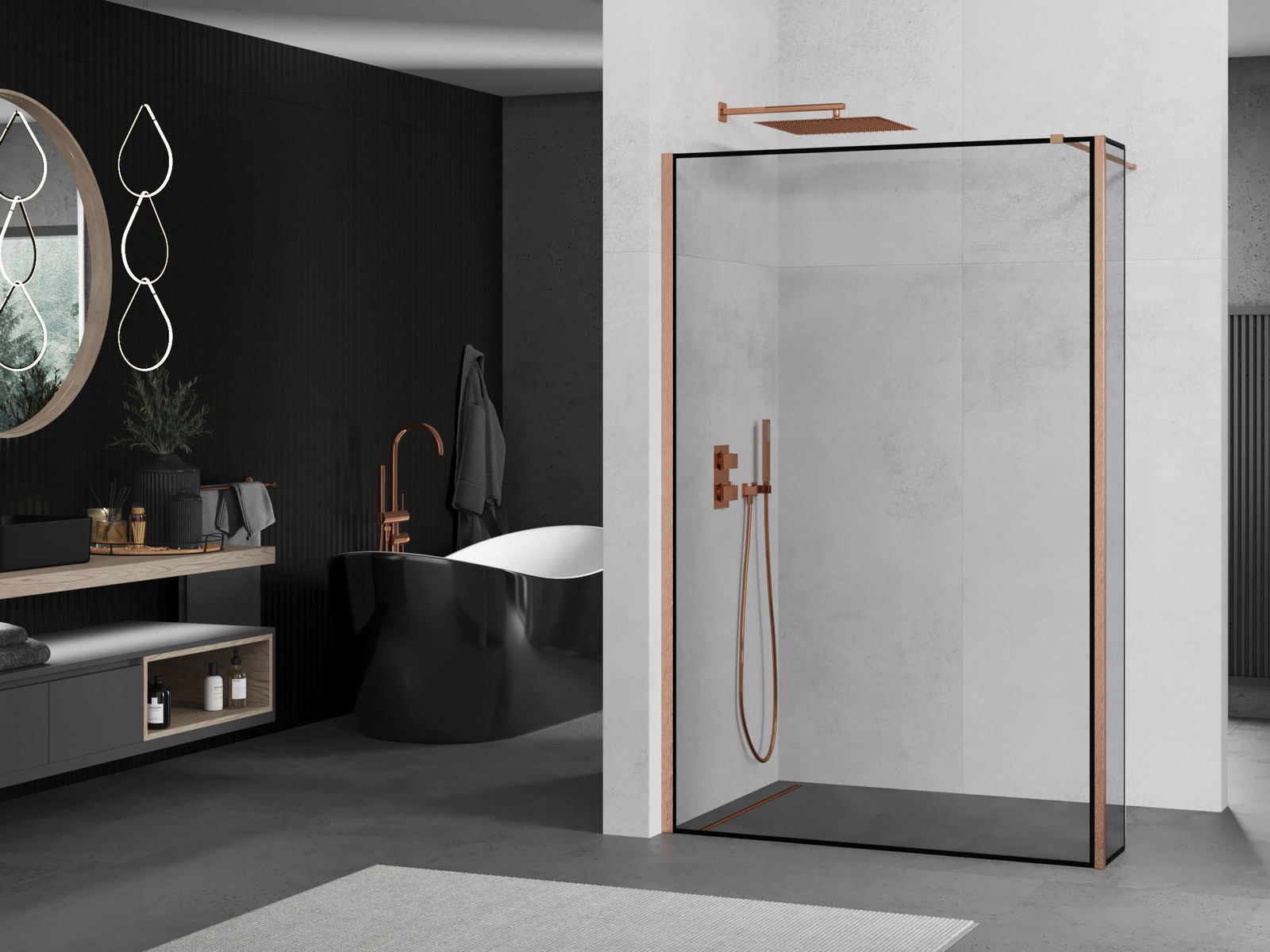 Mexen Kioto ścianka prysznicowa Walk-in 110 x 40 cm, czarna ramka, miedź szczotkowana - 800-110-212-65-70-040