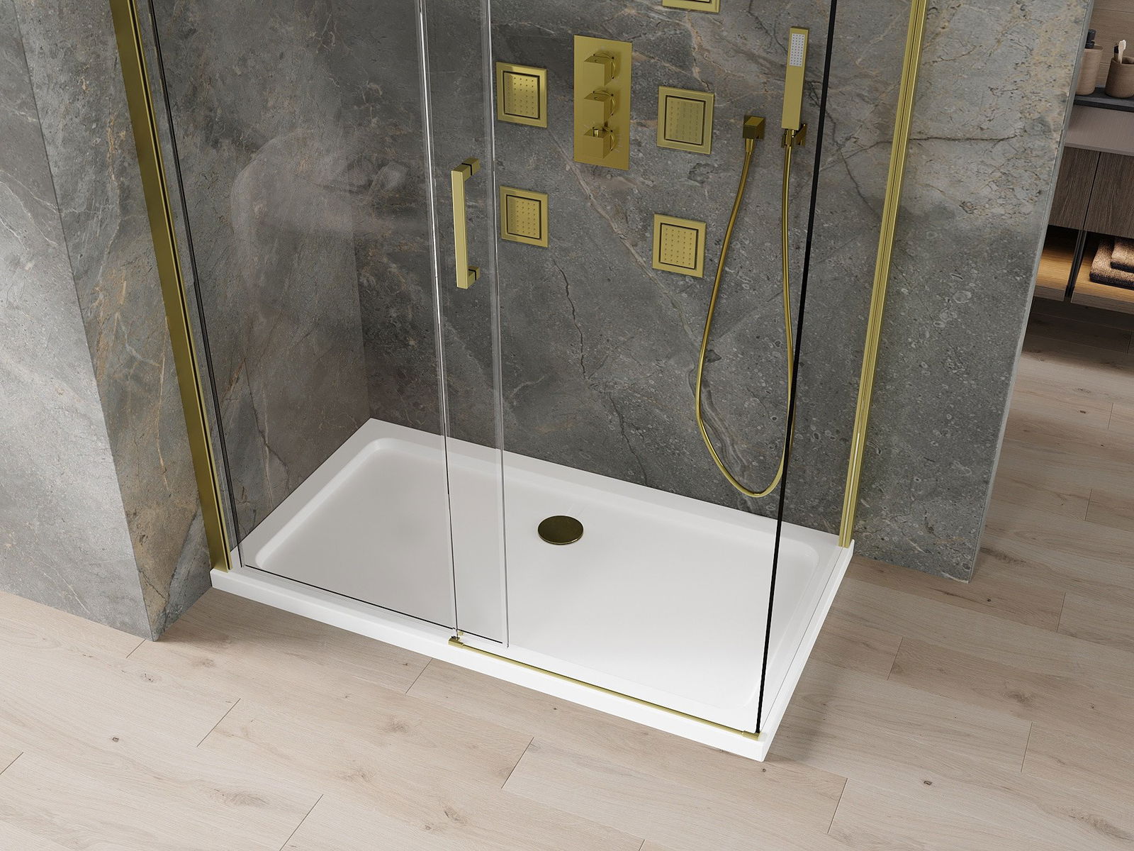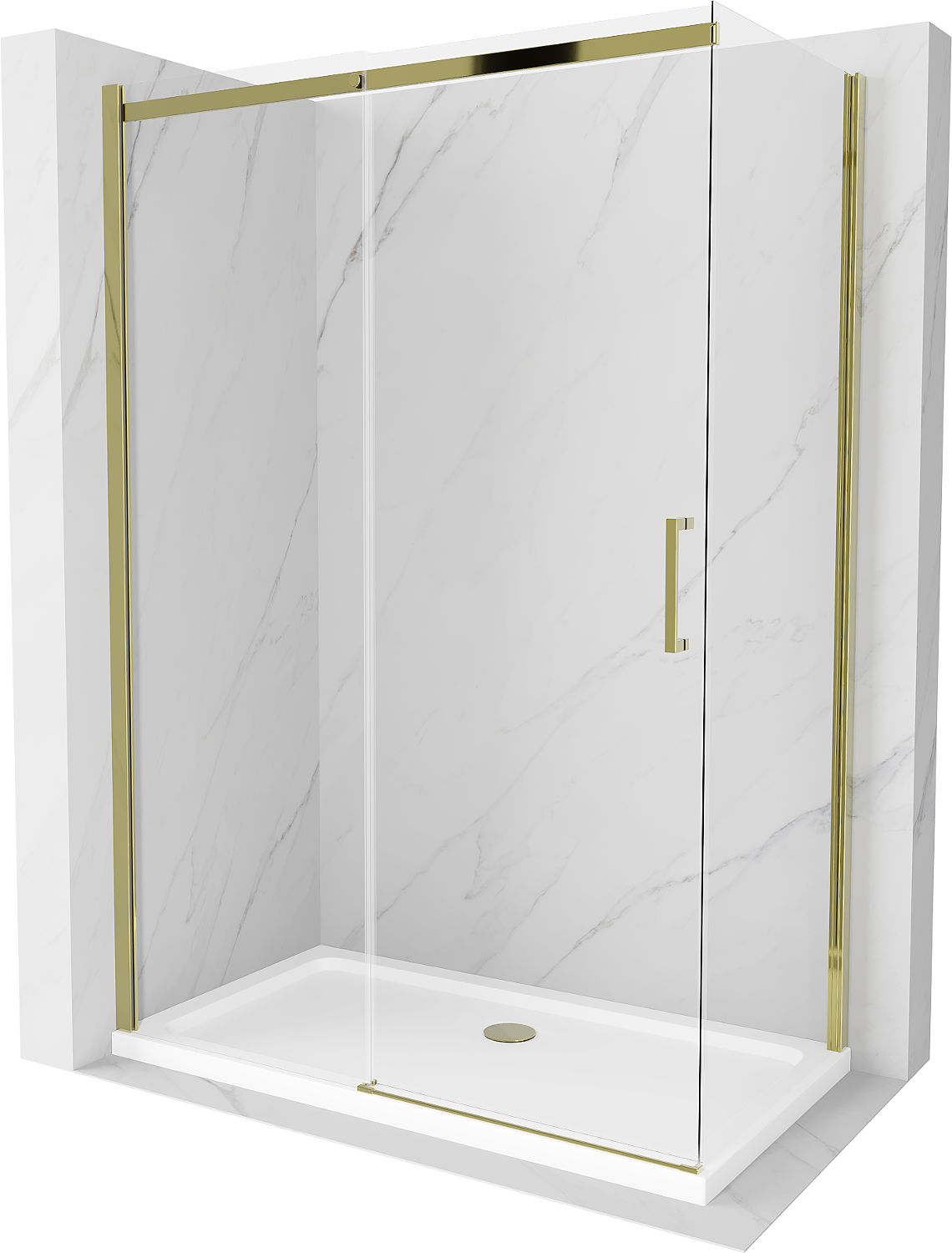 Mexen Omega kabina prysznicowa rozsuwana 140 x 70 cm, transparent, złota + brodzik Flat - 825-140-070-50-00-4010
