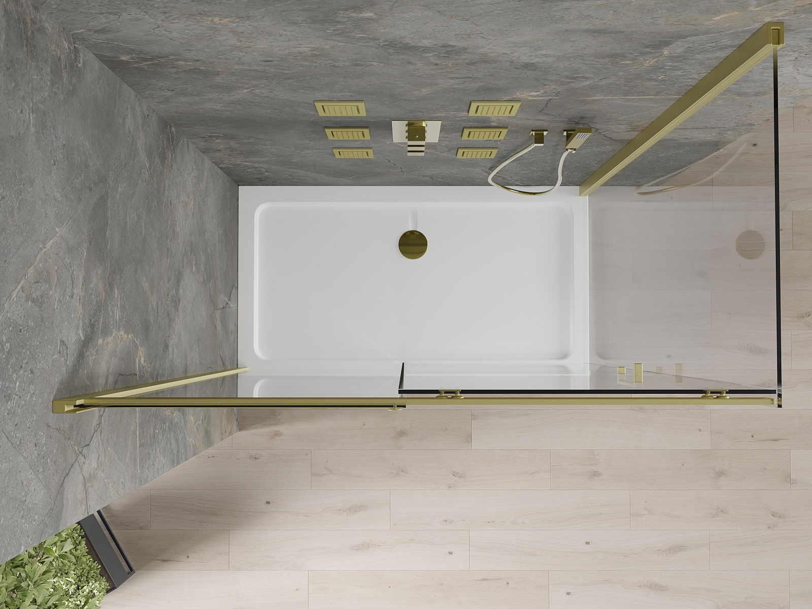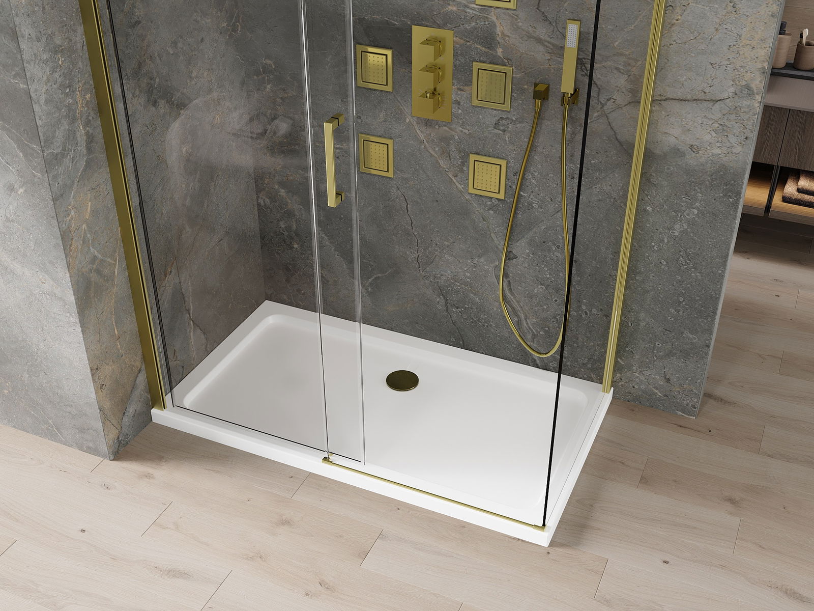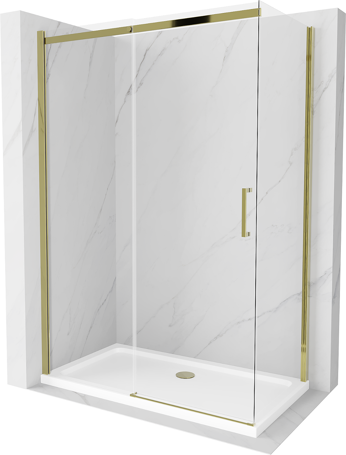 Mexen Omega kabina prysznicowa rozsuwana 140 x 80 cm, transparent, złota + brodzik Flat - 825-140-080-50-00-4010