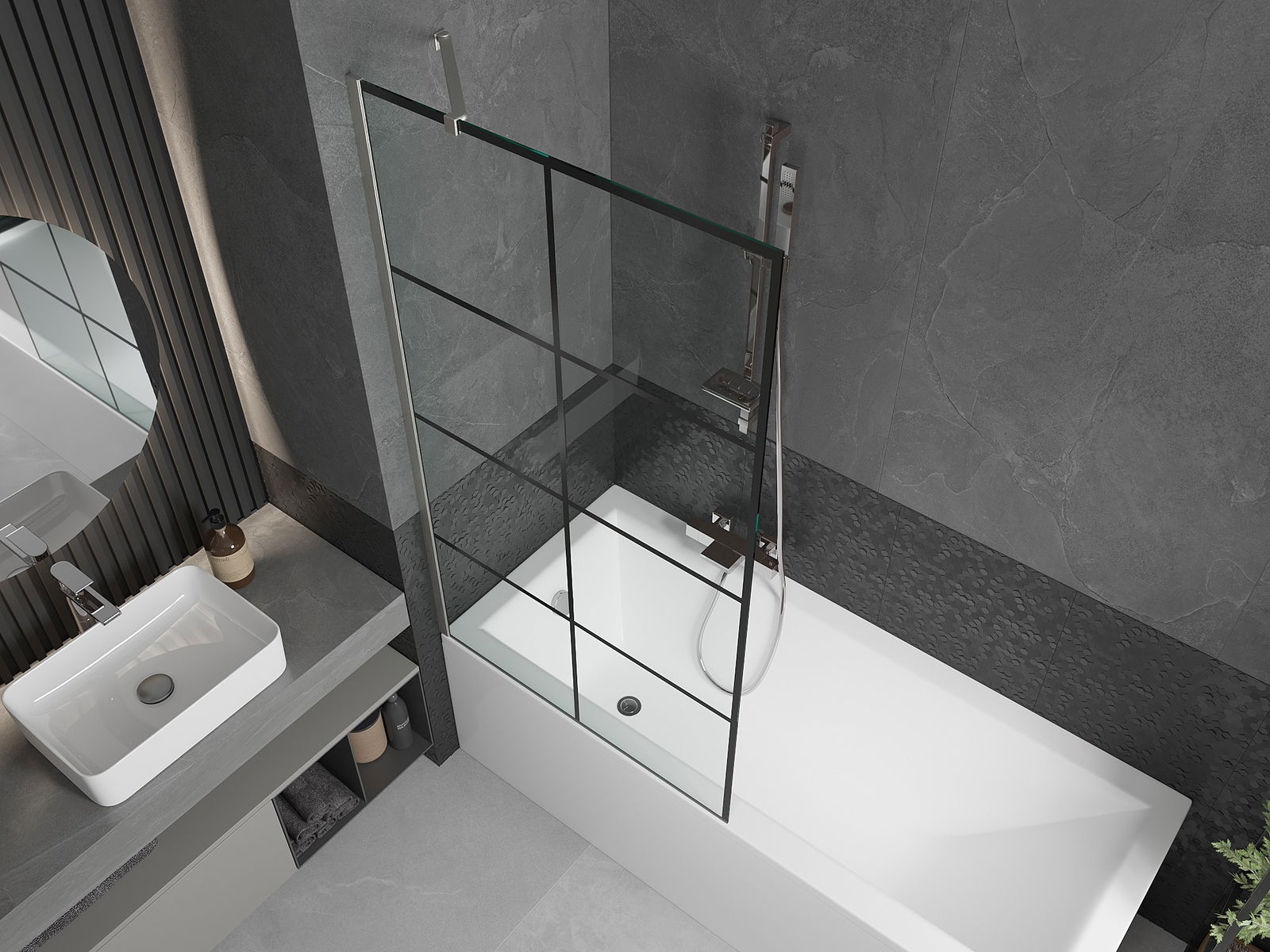 Mexen Next parawan nawannowy 1-skrzydłowy 90 x 150 cm, czarna kratka, nikiel szczotkowany - 895-090-000-00-77-97