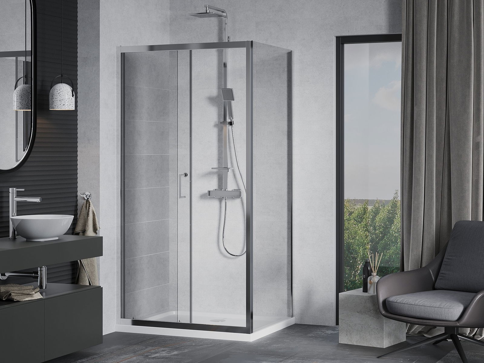 Mexen Apia kabina prysznicowa rozsuwana 90 x 70 cm, transparent, chrom + brodzik Flat - 840-090-070-01-00-4010