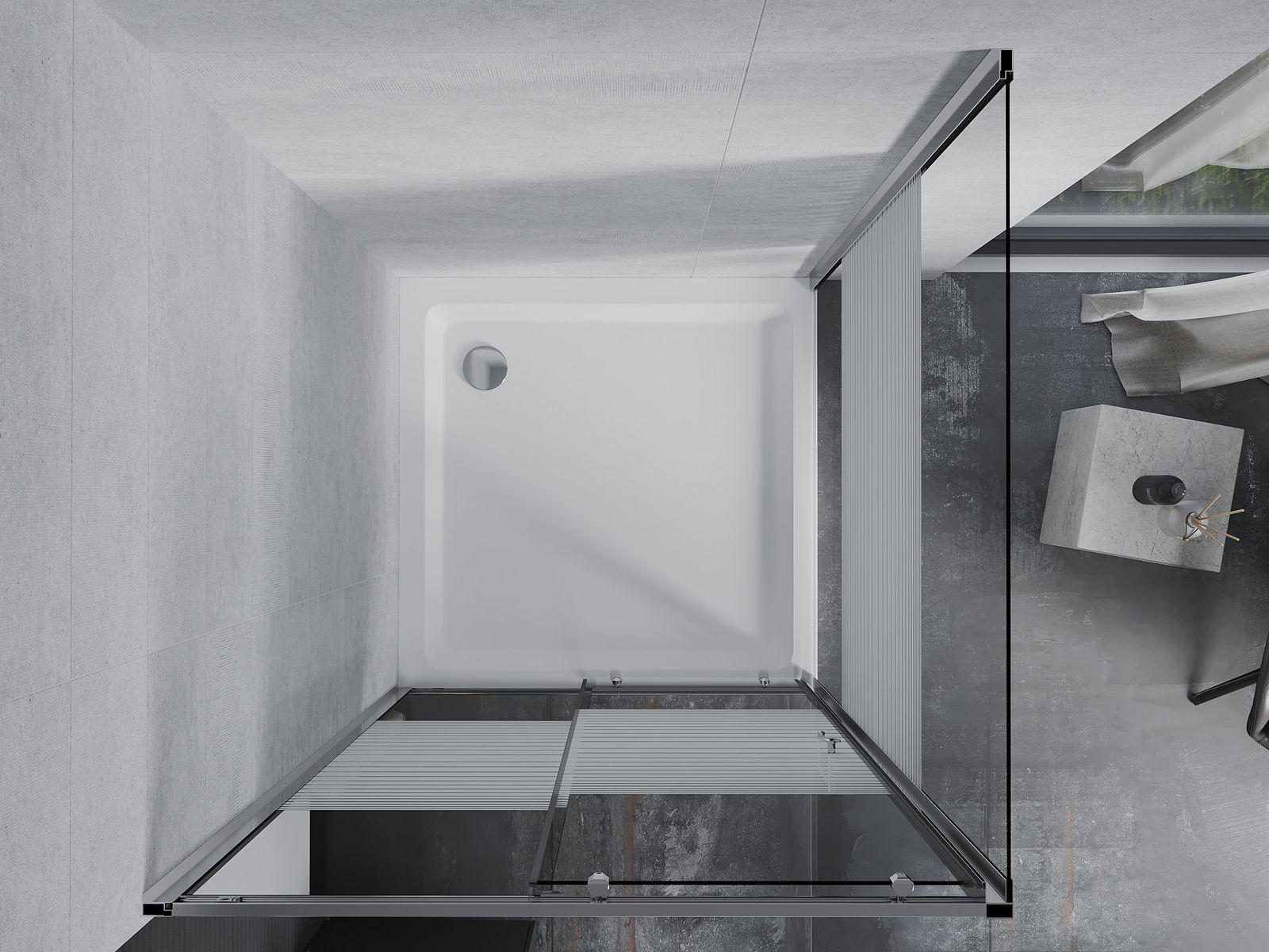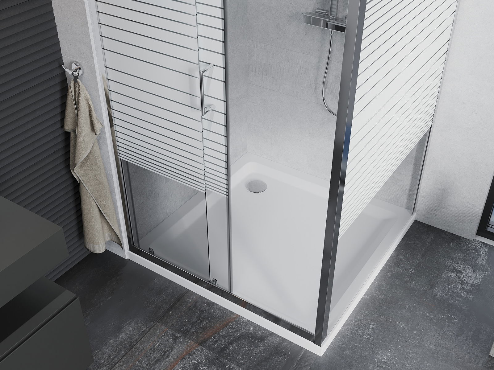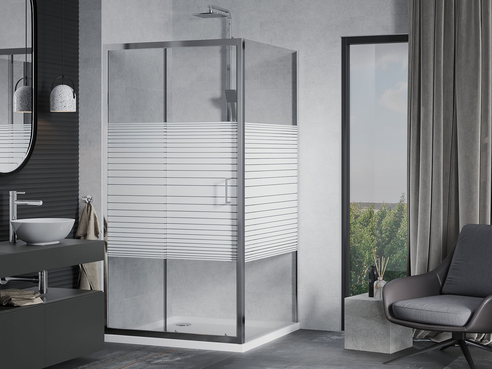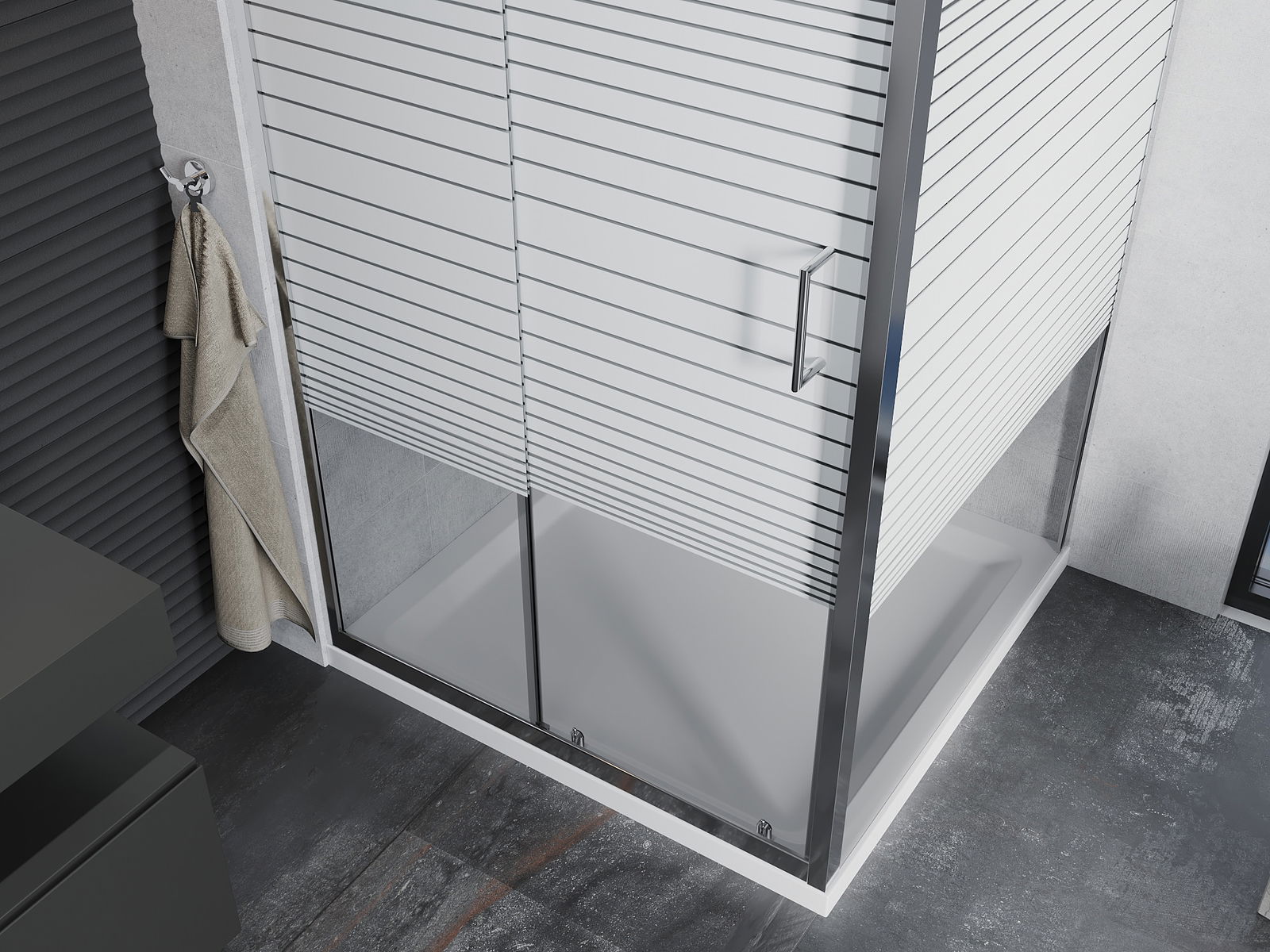 Mexen Apia kabina prysznicowa rozsuwana 100 x 100 cm, białe pasy, chrom + brodzik Flat - 840-100-100-01-20-4010