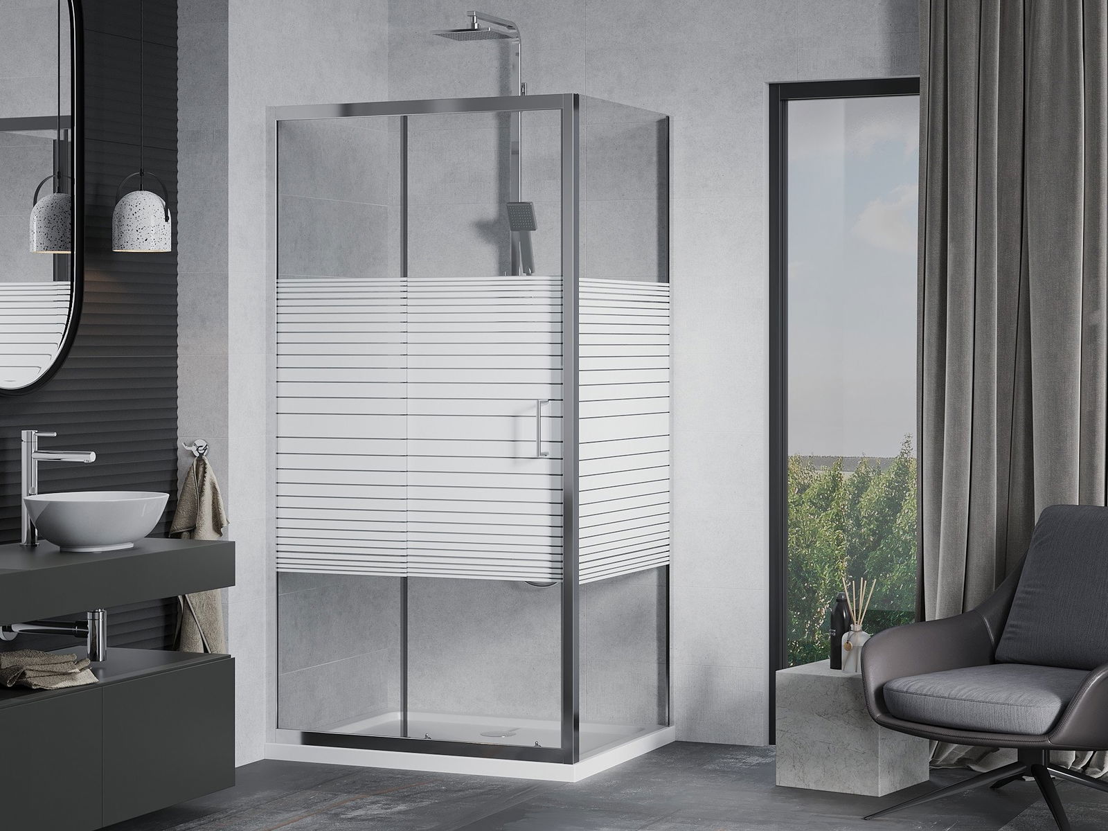 Mexen Apia kabina prysznicowa rozsuwana 130 x 100 cm, białe pasy, chrom + brodzik Flat - 840-130-100-01-20-4010