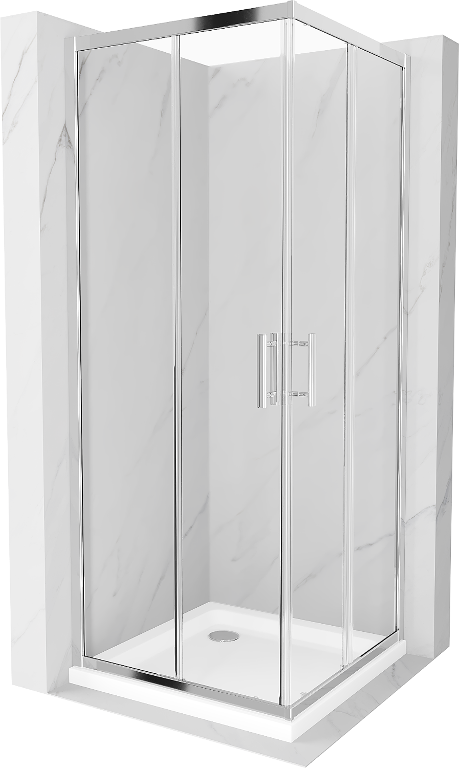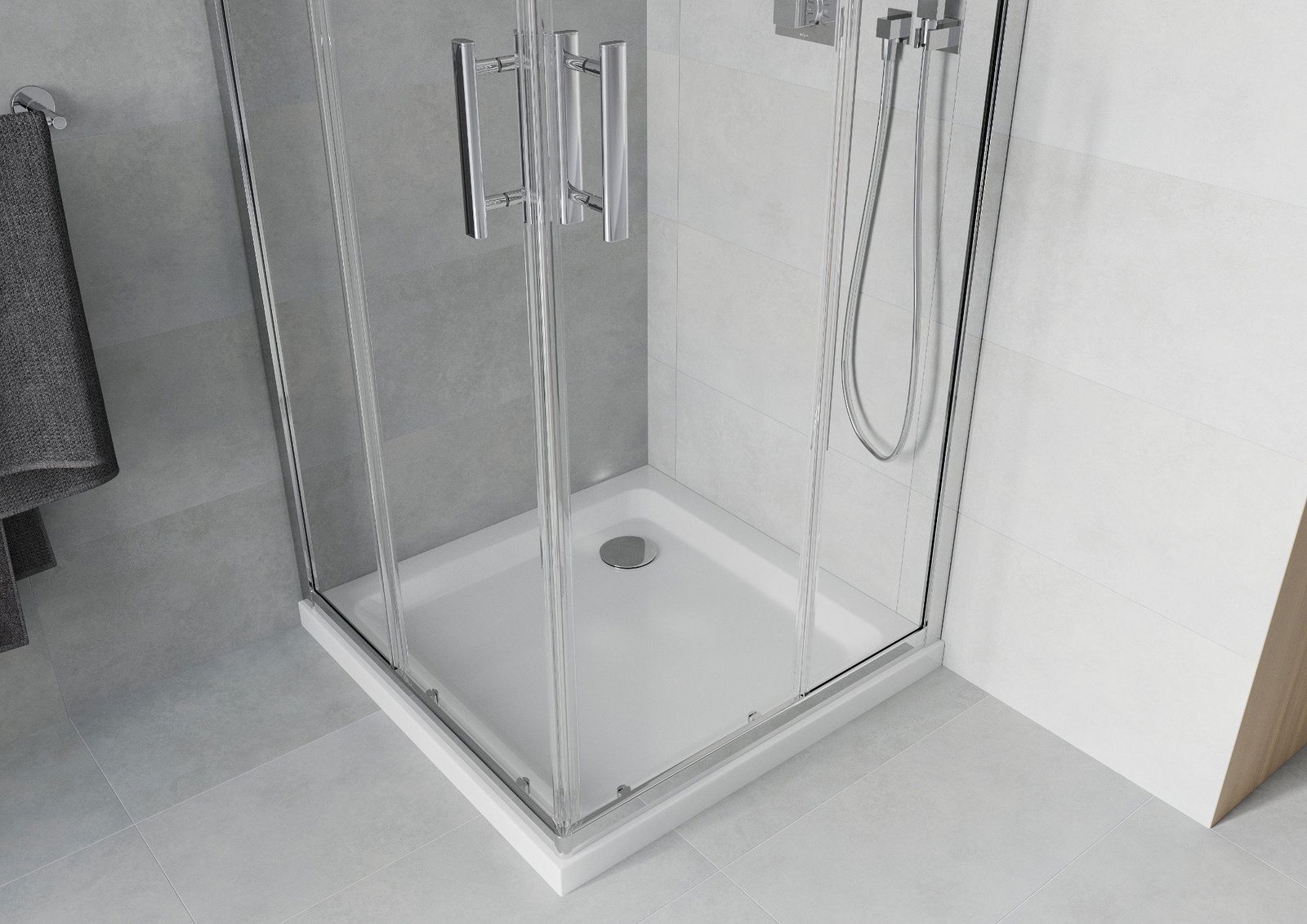 Mexen Rio kabina prysznicowa kwadratowa 80 x 80 cm, transparent, chrom + brodzik Flat, biały - 860-080-080-01-00-4010