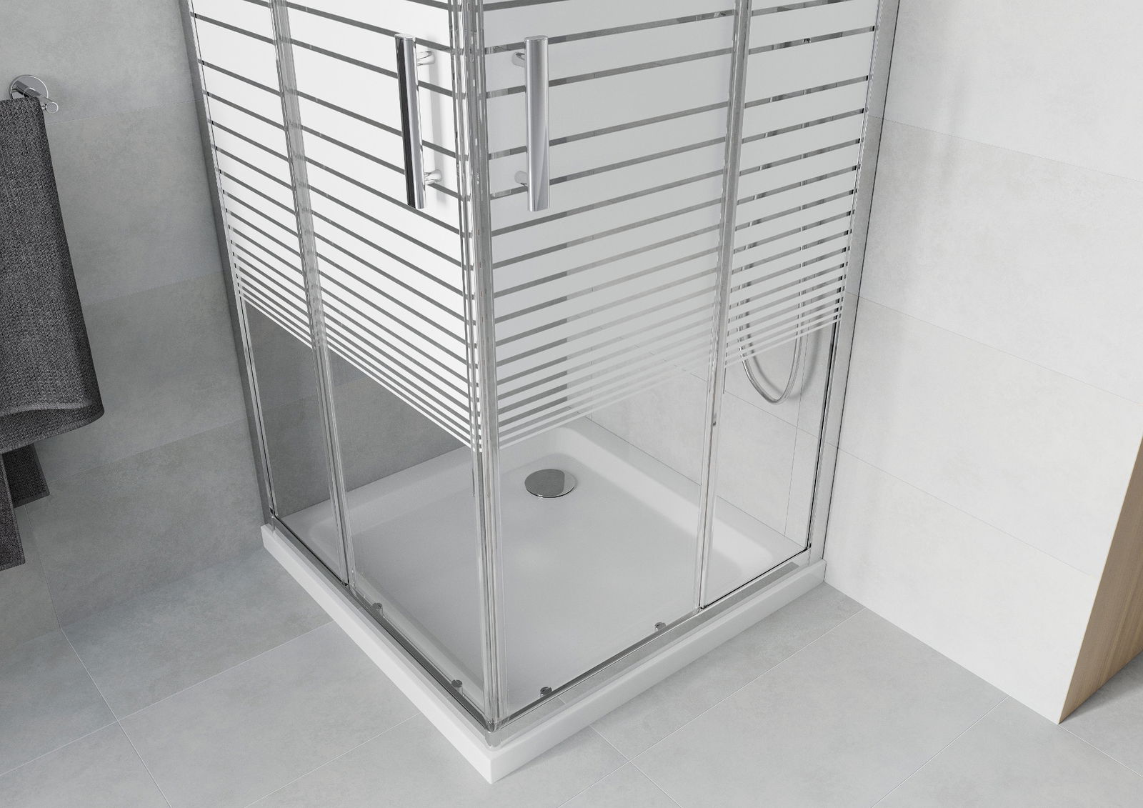 Mexen Rio kabina prysznicowa kwadratowa 80 x 80 cm, białe pasy, chrom + brodzik Flat, biały - 860-080-080-01-20-4010