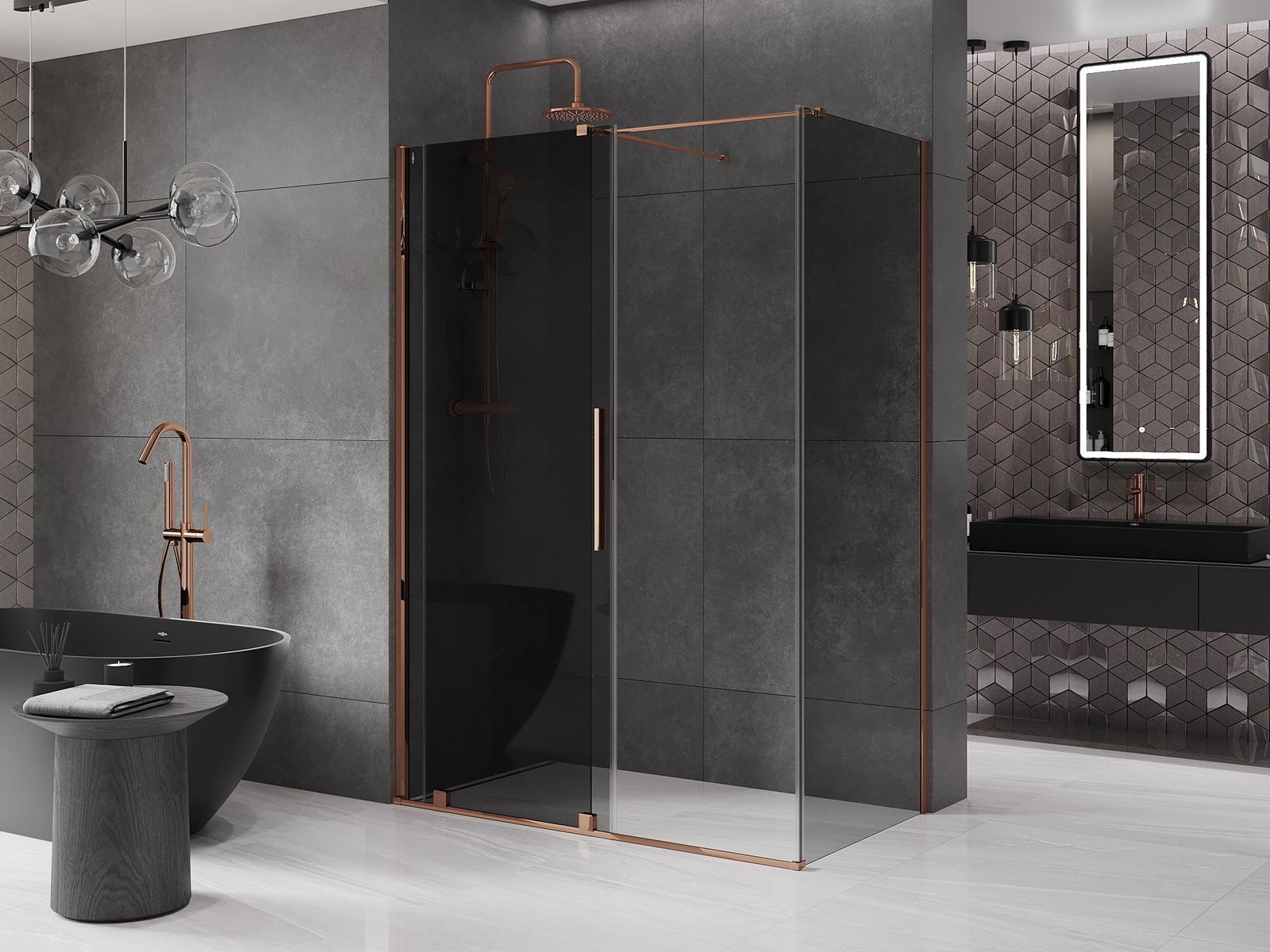 Mexen Velar kabina prysznicowa rozsuwana 150 x 80 cm, grafit, różowe złoto - 871-150-080-41-60