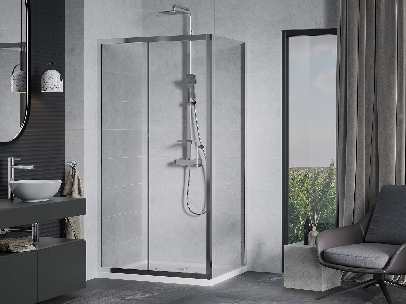 Drzwi przesuwne poruszają się po specjalnych prowadnicach i nie wymagają dodatkowej przestrzeni, żeby je otworzyć, dlatego sprawdzą się w mniejszych łazienkach. Dzięki podwójnym rolkom z trwałego tworzywa sztucznego ich ruch jest płynny.