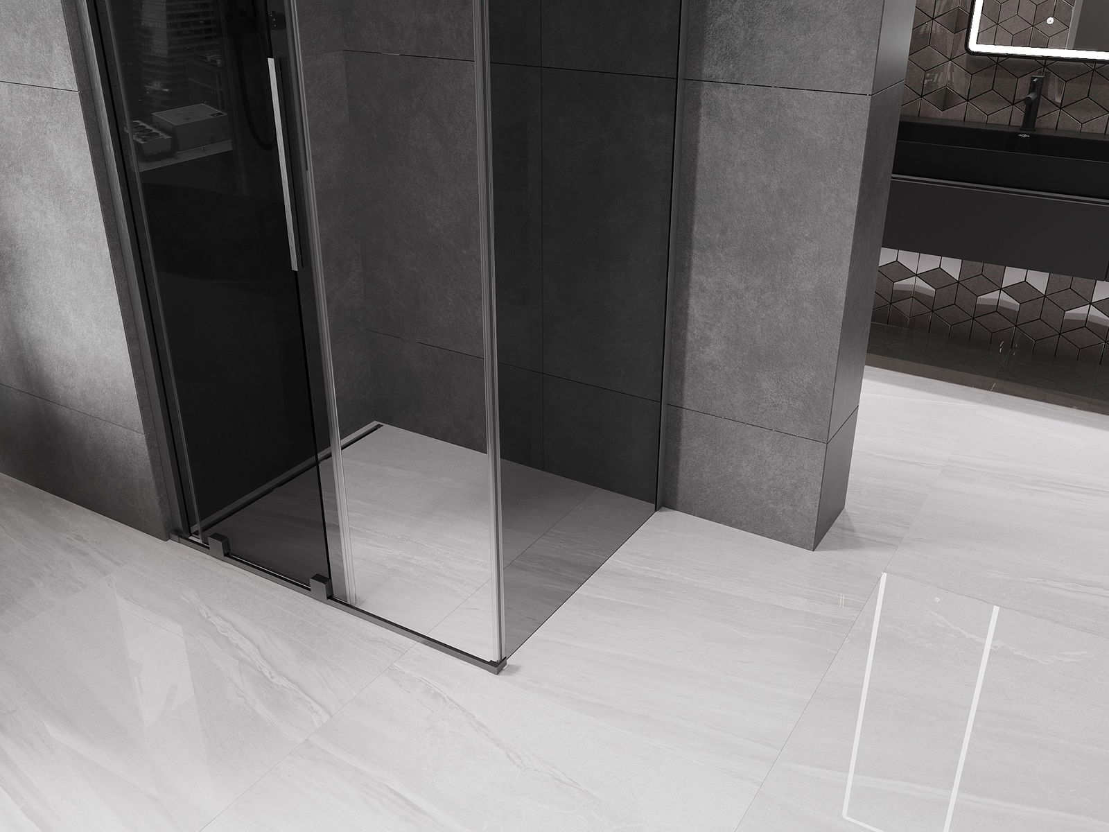 Dzięki zastosowaniu uniwersalnego systemu mocowania, drzwi prysznicowe mogą zostać zamontowane z prawej lub z lewej strony, zależnie od potrzeb. Dzięki temu możesz z łatwością zaprojektować prysznic dopasowany do przestrzeni łazienki.