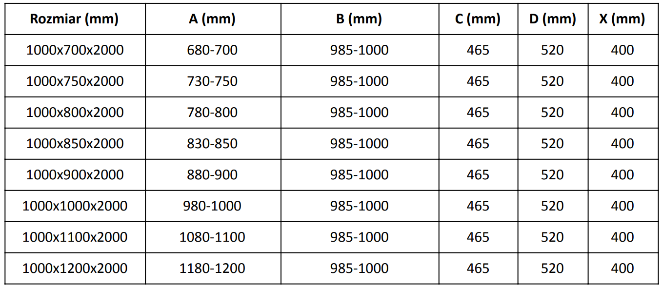 Rozmiar: 100x85 cm (drzwi 100 cm, ścianka 85 cm)