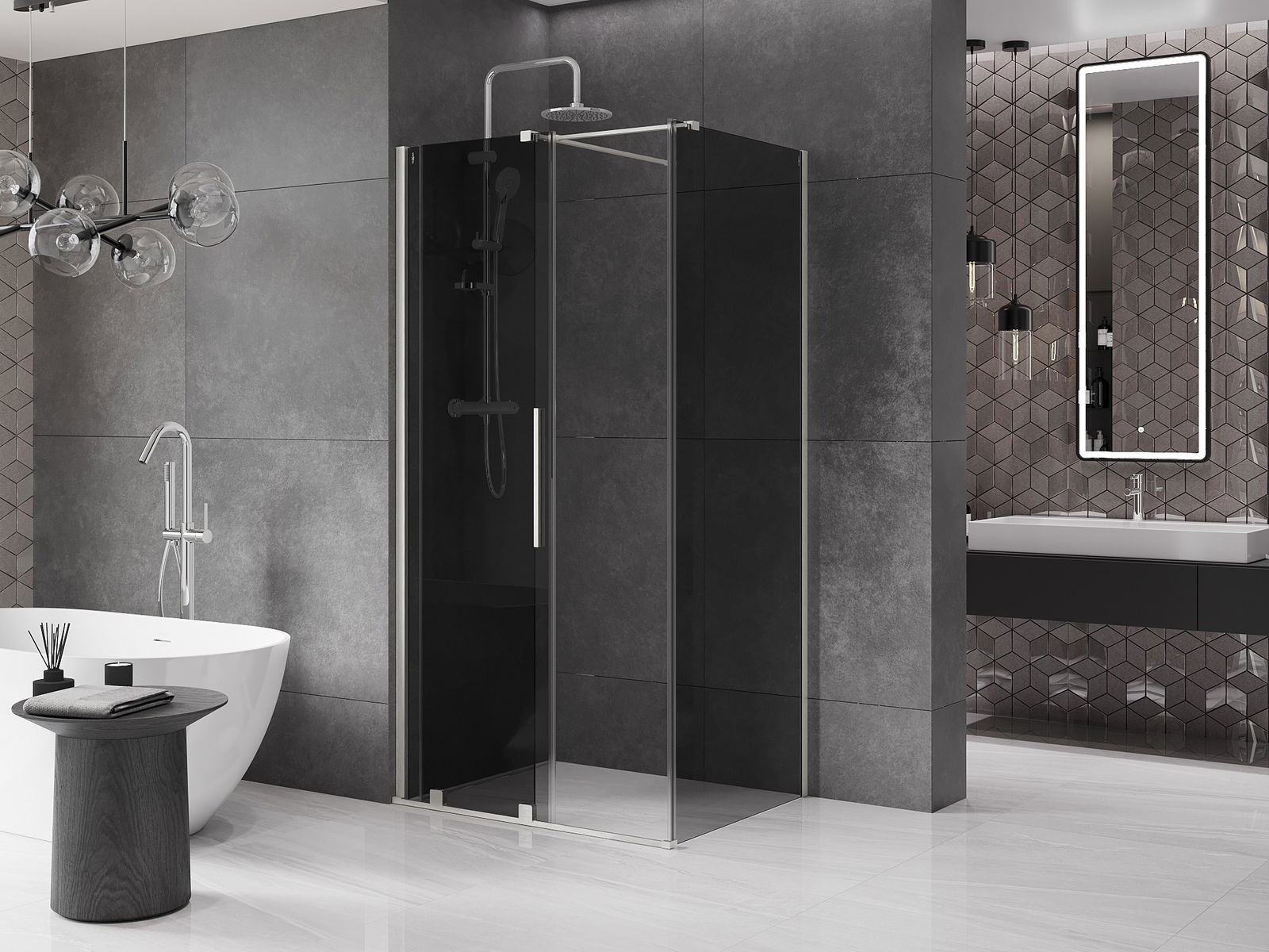 Dzięki zastosowaniu uniwersalnego systemu mocowania, drzwi prysznicowe mogą zostać zamontowane z prawej lub z lewej strony, zależnie od potrzeb. Dzięki temu możesz z łatwością zaprojektować prysznic dopasowany do przestrzeni łazienki.