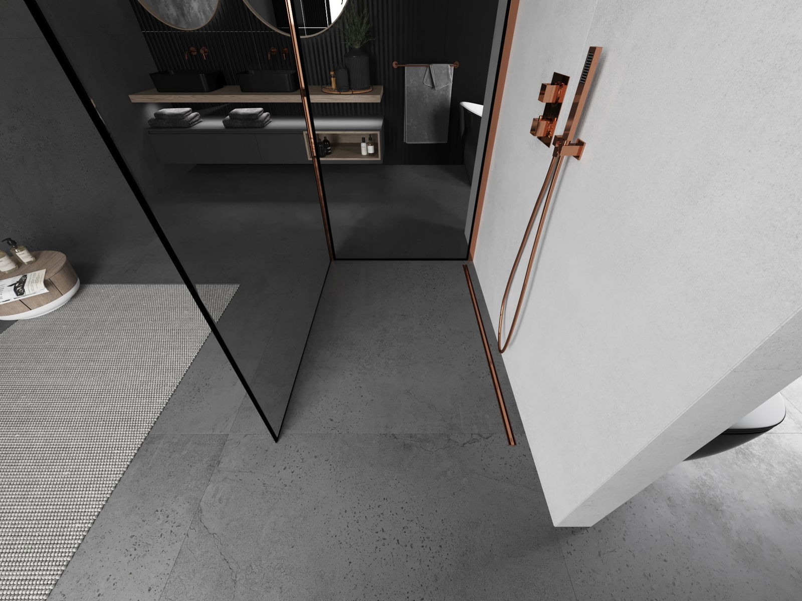 Mexen Kioto ścianka prysznicowa Walk-in 90 x 90 cm, czarna ramka, różowe złoto - 800-090-212-60-70-090