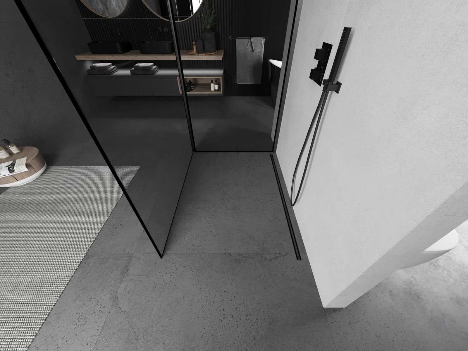 Mexen Kioto ścianka prysznicowa Walk-in 90 x 80 cm, czarna ramka, gun gray szczotkowany - 800-090-212-66-70-080