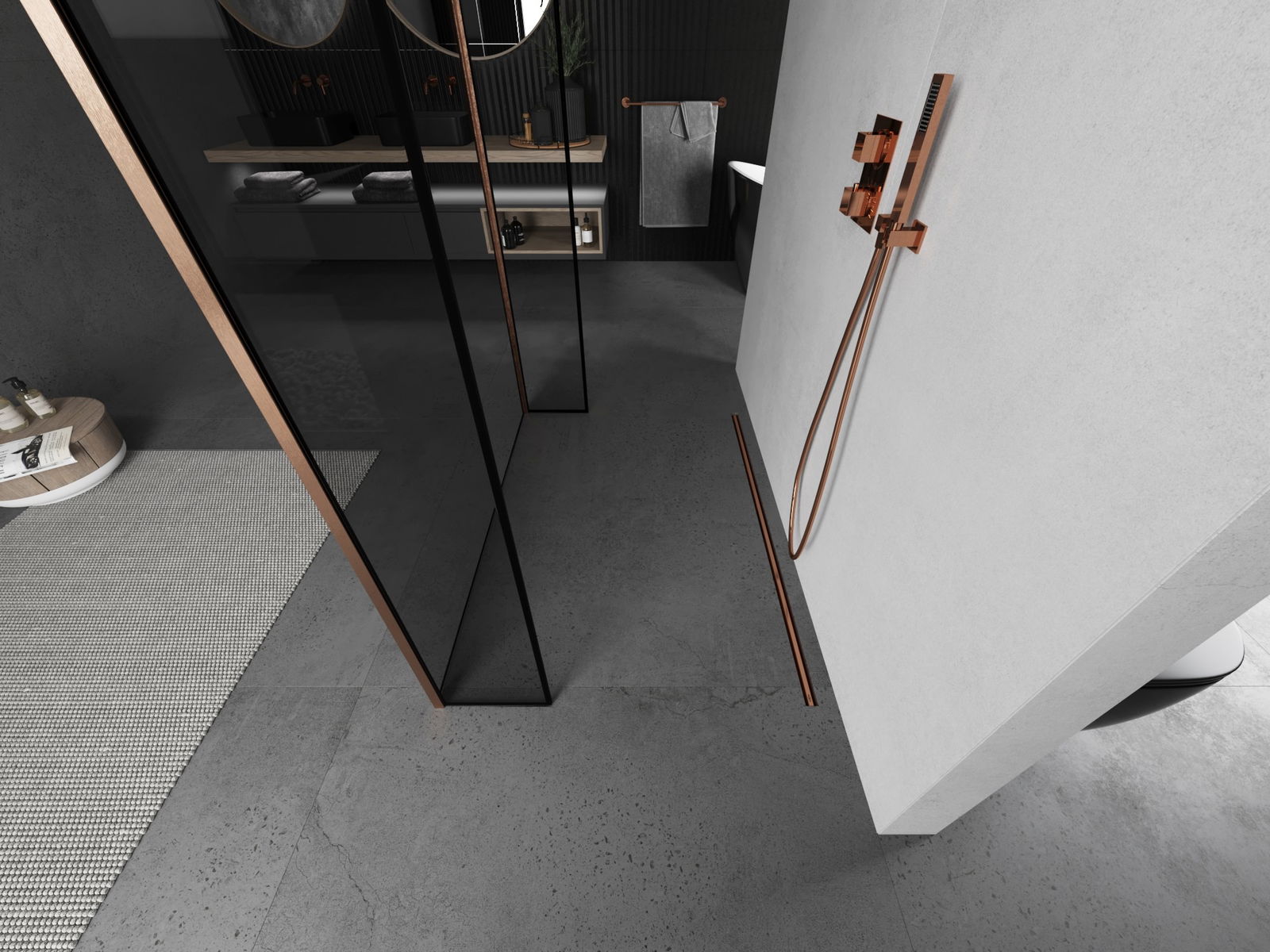 Mexen Kioto ścianka prysznicowa wolnostojąca 150 x 30 x 30 cm, czarna ramka, miedź szczotkowana - 800-150-030-222-65-70-030