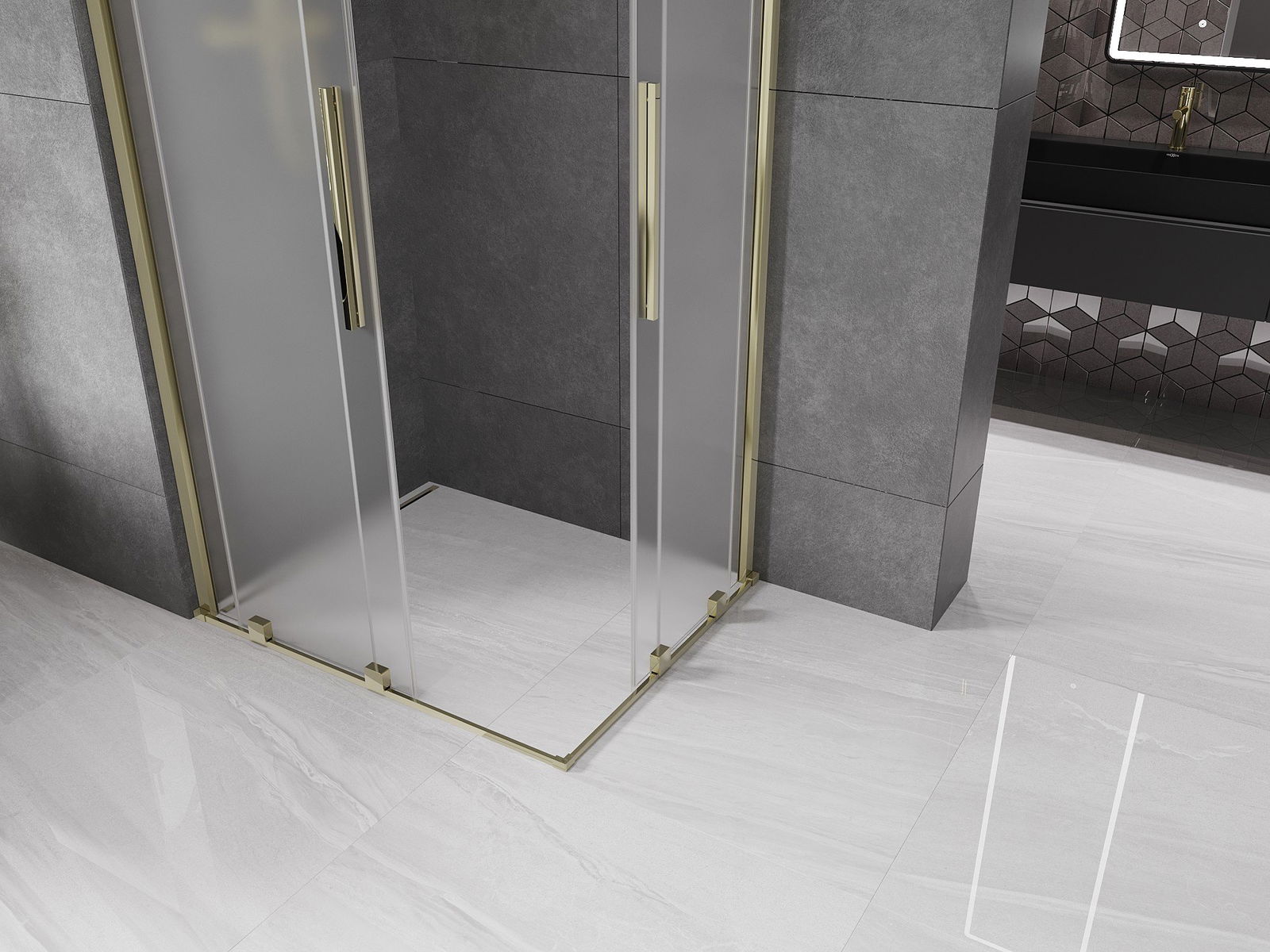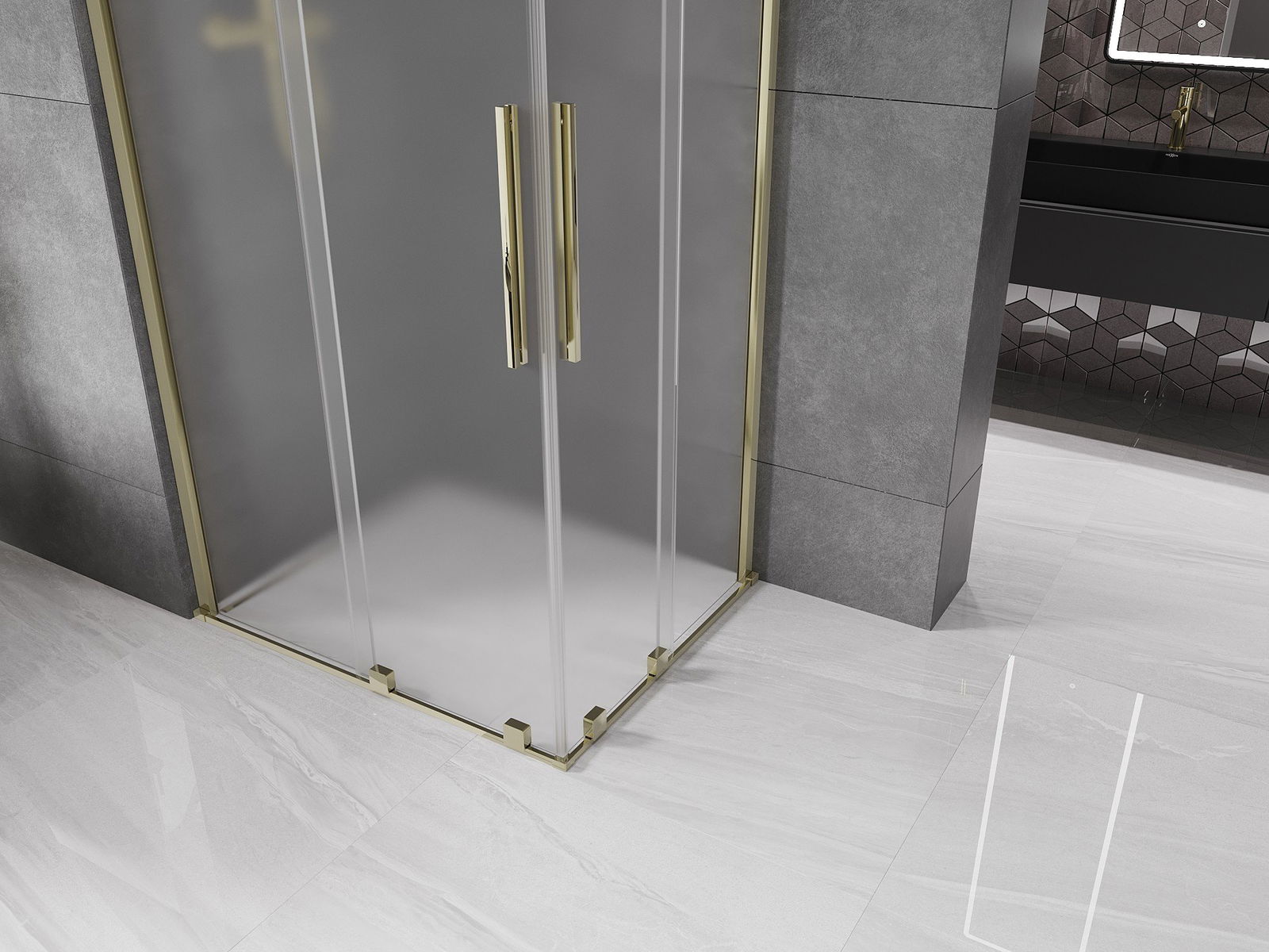 Mexen Velar Duo kabina prysznicowa rozsuwana 100 x 90 cm, szron, złota - 871-100-090-32-50