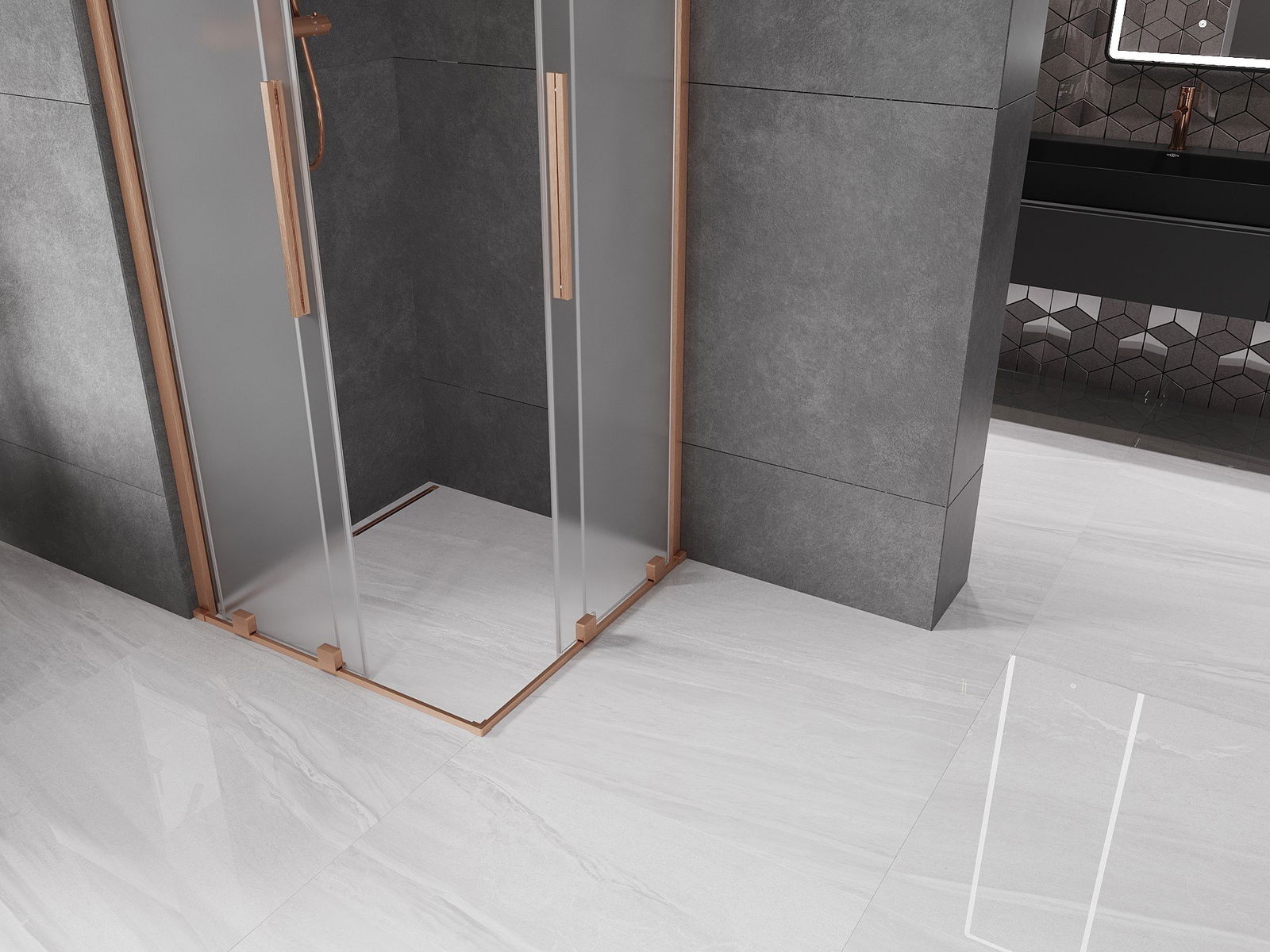 Mexen Velar Duo kabina prysznicowa rozsuwana 80 x 80 cm, szron, miedź szczotkowana - 871-080-080-32-65