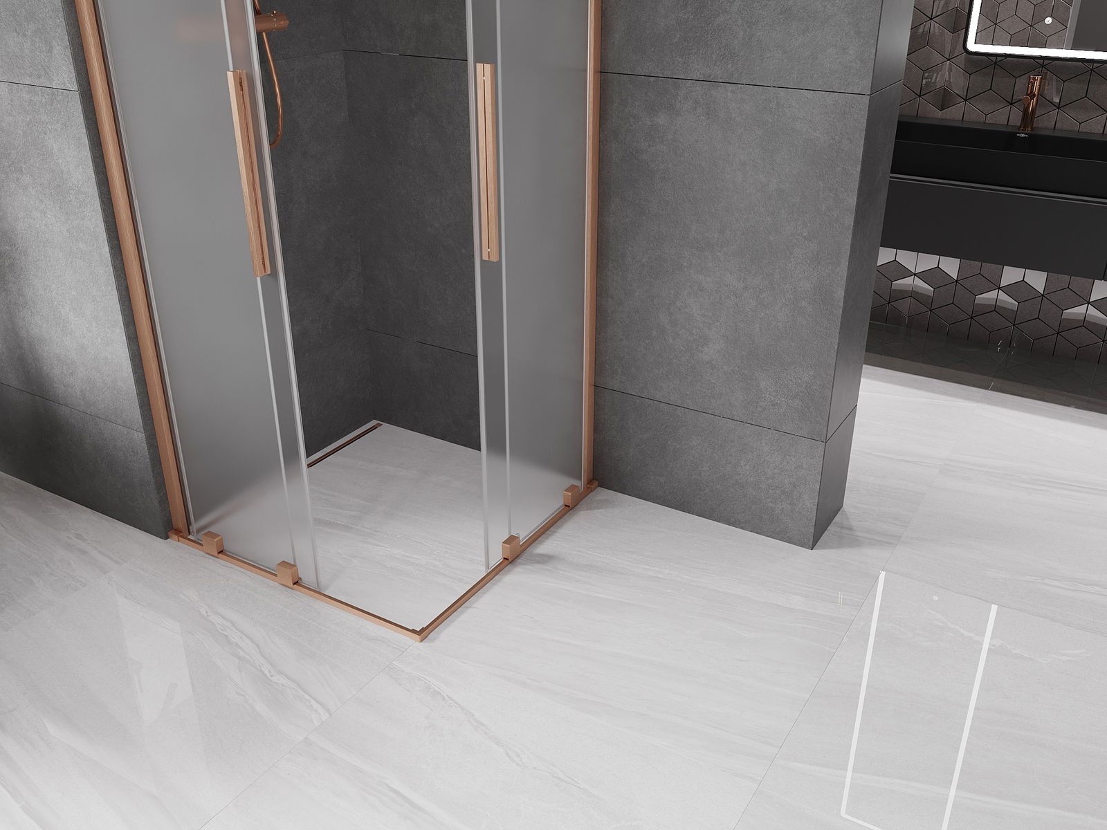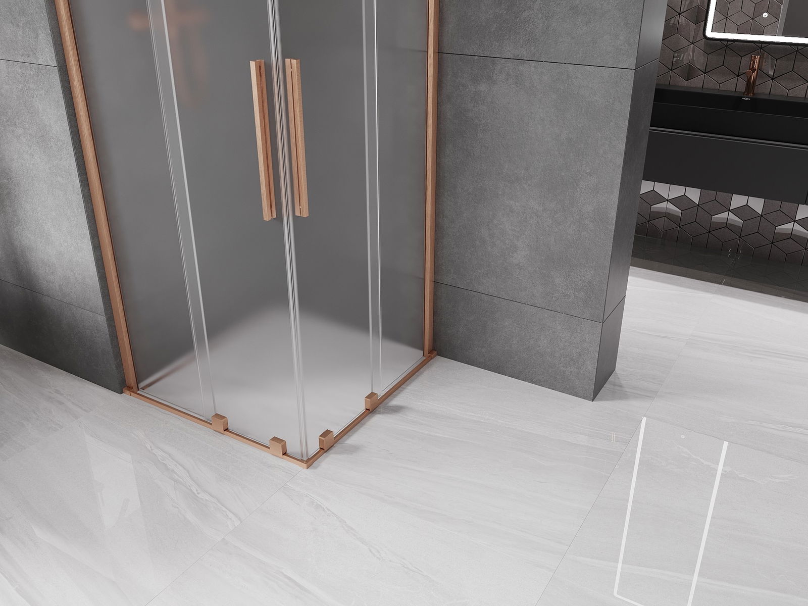 Mexen Velar Duo kabina prysznicowa rozsuwana 100 x 100 cm, szron, miedź szczotkowana - 871-100-100-32-65