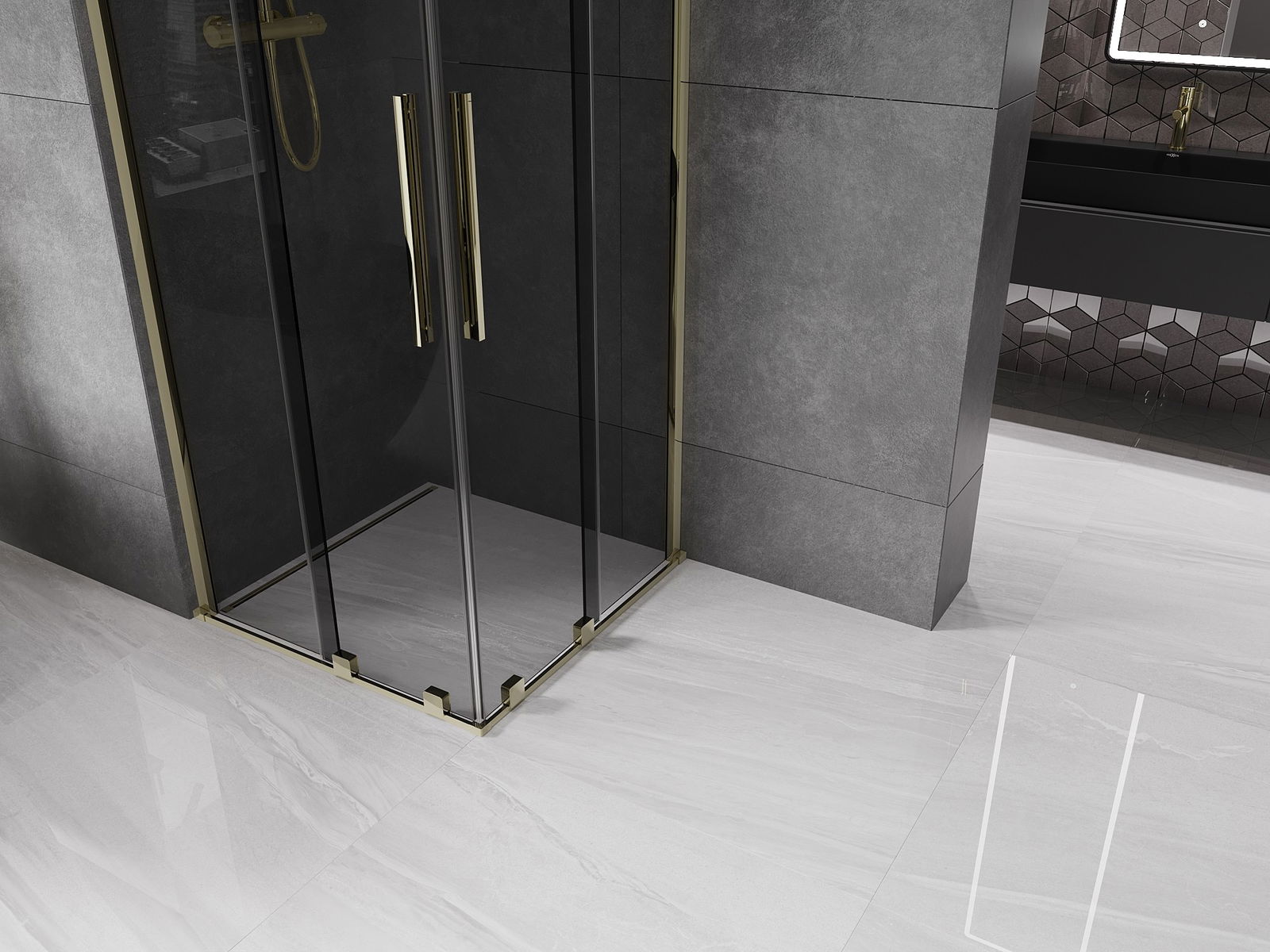Mexen Velar Duo kabina prysznicowa rozsuwana 90 x 90 cm, grafit, złota - 871-090-090-42-50