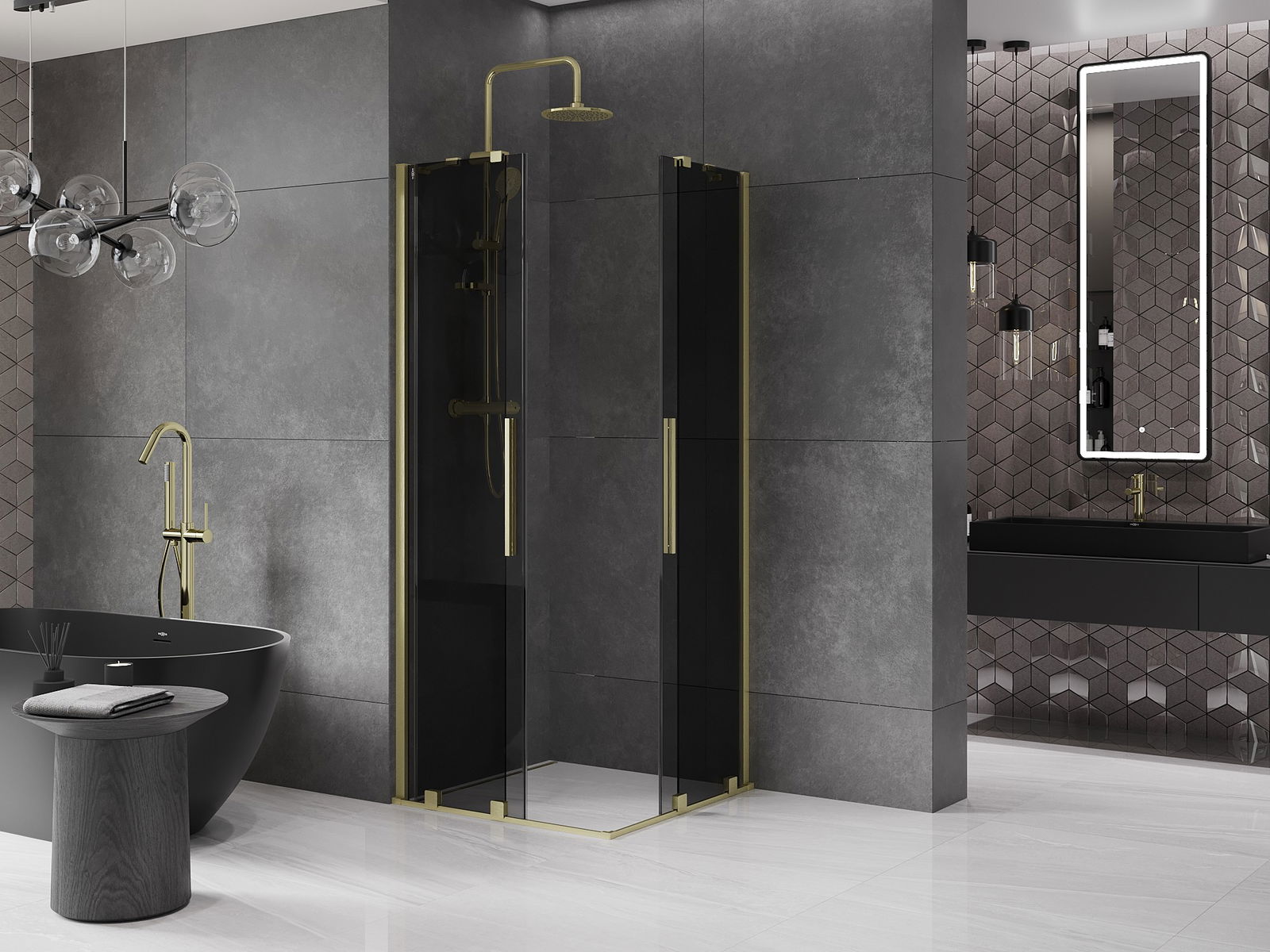 Mexen Velar Duo kabina prysznicowa rozsuwana 90 x 90 cm, grafit, złota szczotkowana - 871-090-090-42-55