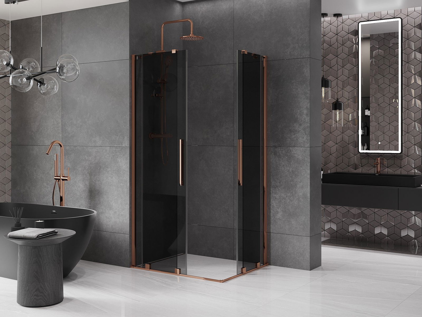Mexen Velar Duo kabina prysznicowa rozsuwana 100 x 90 cm, grafit, różowe złoto - 871-100-090-42-60