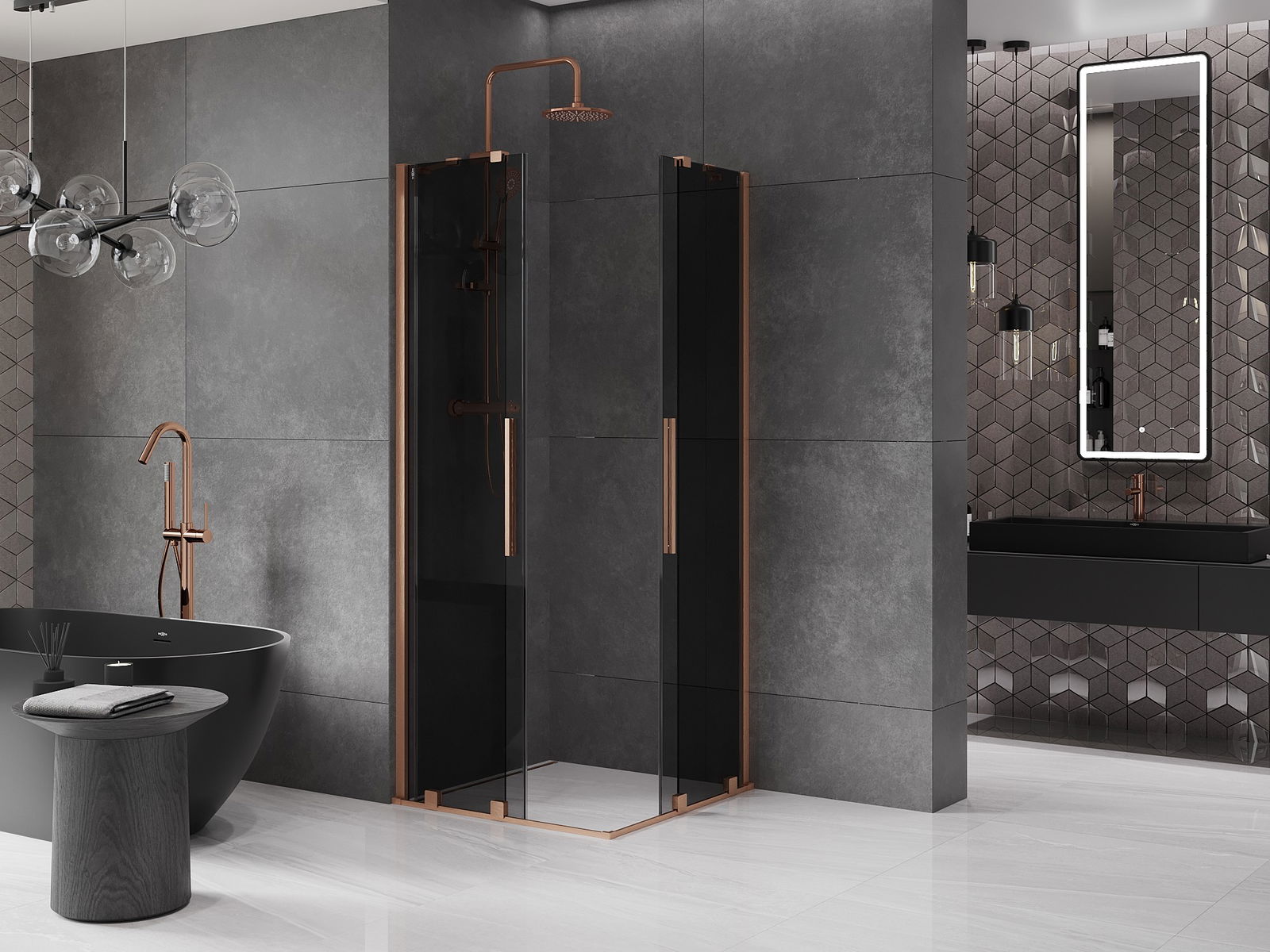 Mexen Velar Duo kabina prysznicowa rozsuwana 100 x 100 cm, grafit, miedź szczotkowana - 871-100-100-42-65