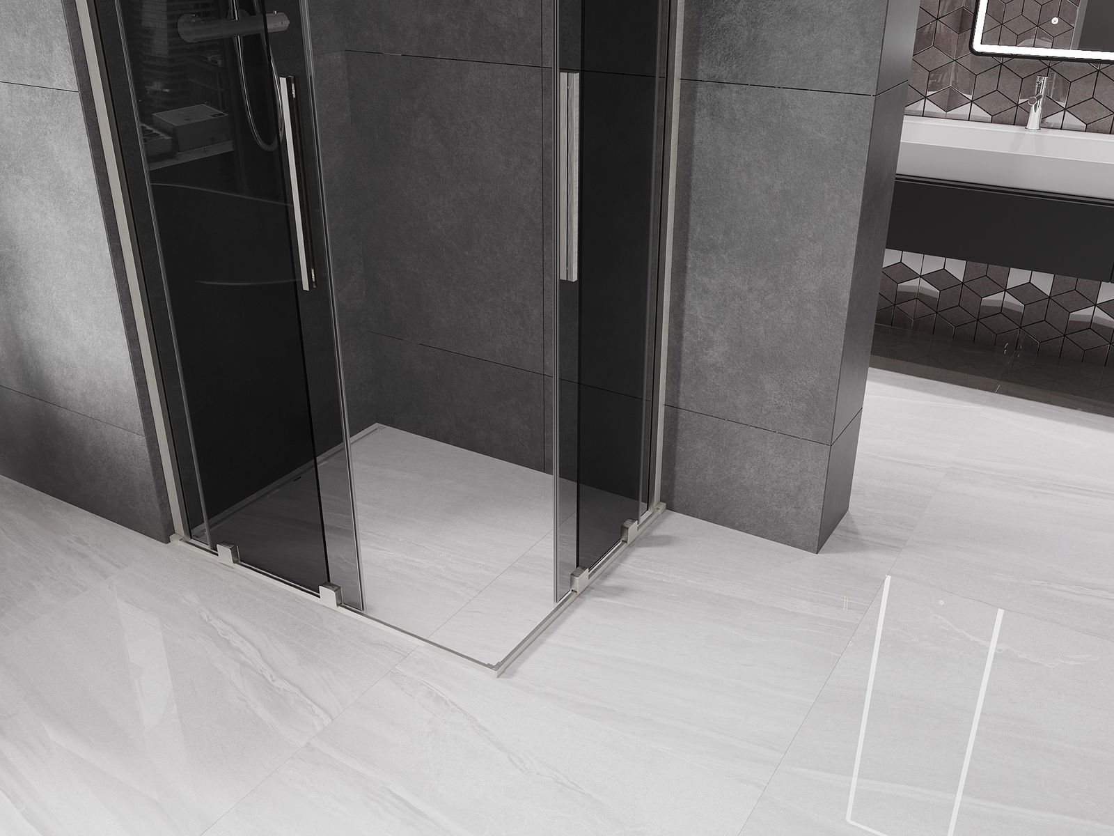 Dzięki zastosowaniu uniwersalnego systemu mocowania, drzwi prysznicowe mogą zostać zamontowane z prawej lub z lewej strony, zależnie od potrzeb. Dzięki temu możesz z łatwością zaprojektować prysznic dopasowany do przestrzeni łazienki.