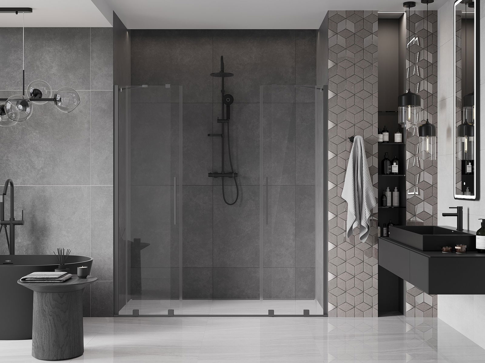 Mexen Velar Duo drzwi prysznicowe rozsuwane 200 cm, transparent, gun metal - 871-200-000-02-95