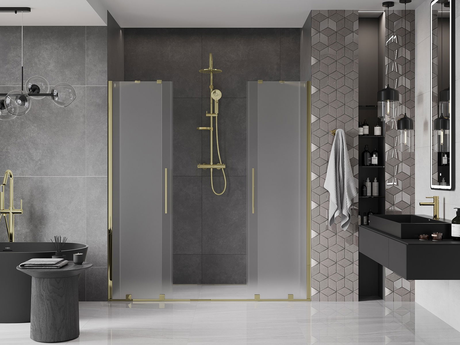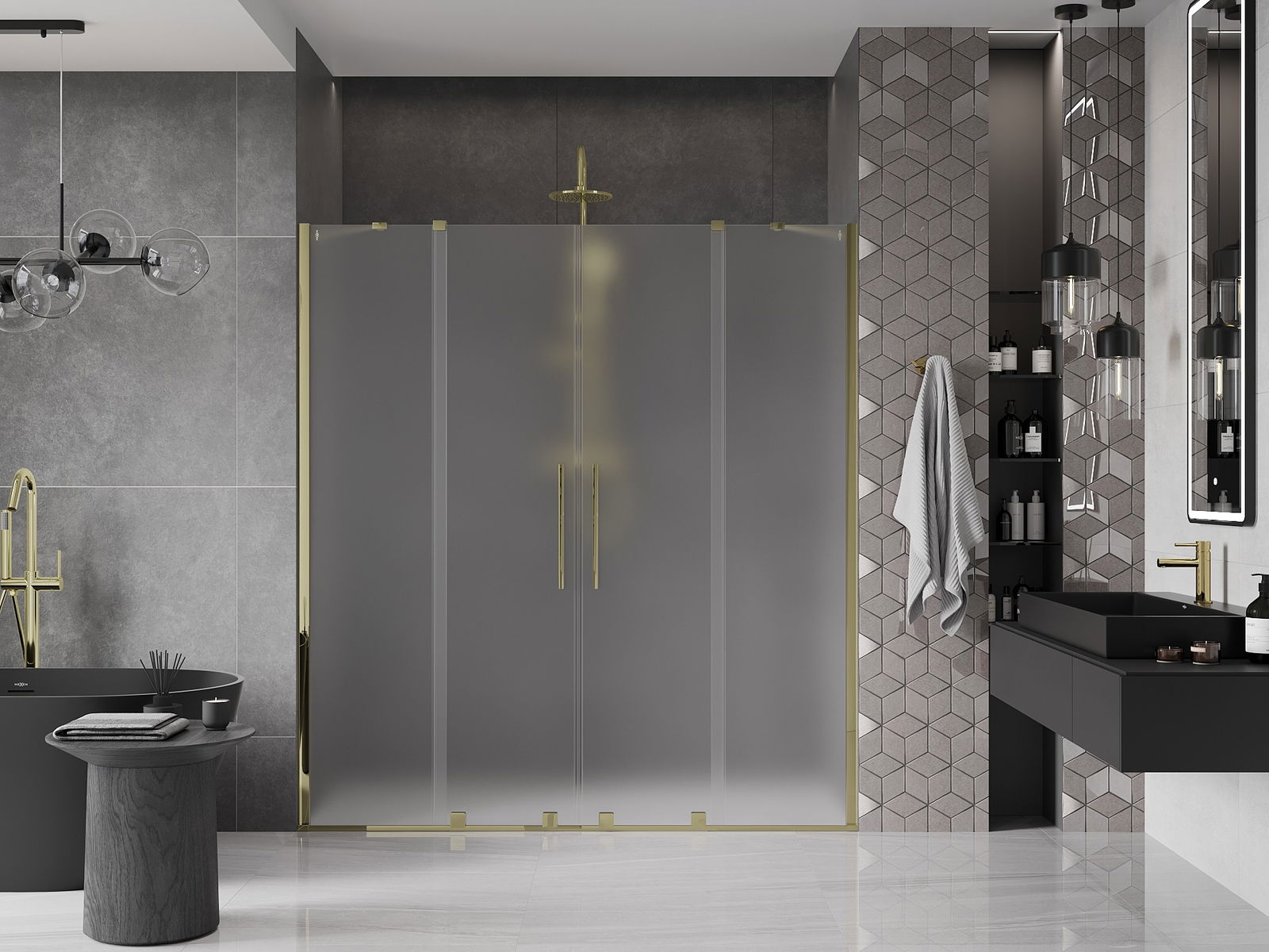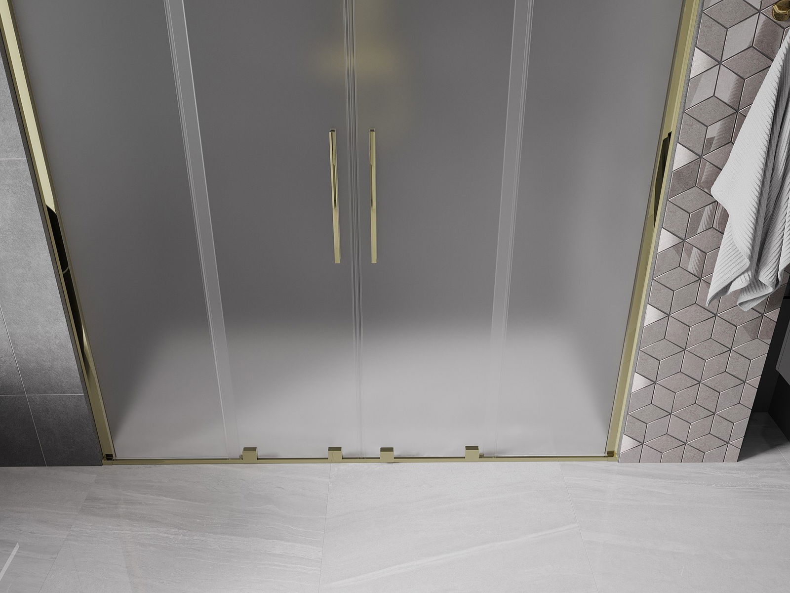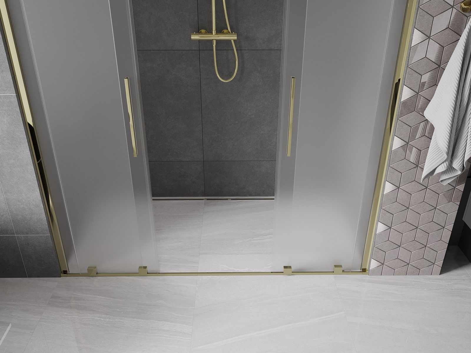 Mexen Velar Duo drzwi prysznicowe rozsuwane 200 cm, szron, złote - 871-200-000-32-50