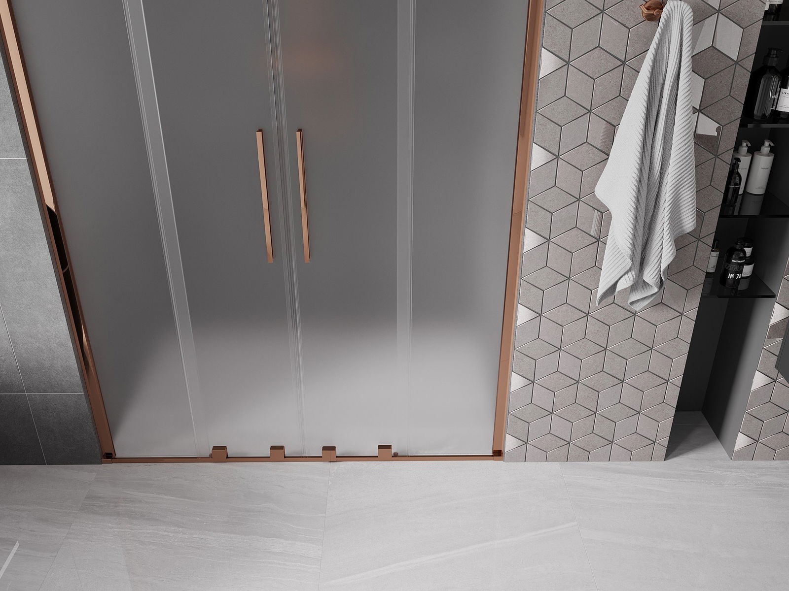 Mexen Velar Duo drzwi prysznicowe rozsuwane 150 cm, szron, różowe złoto - 871-150-000-32-60