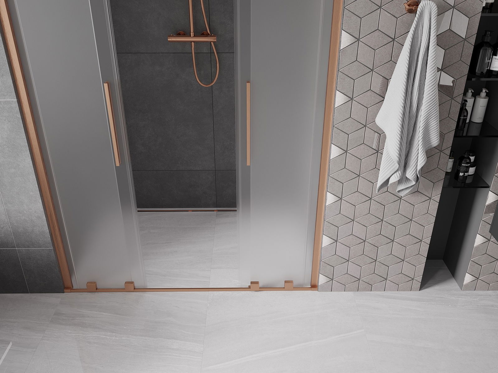 Mexen Velar Duo drzwi prysznicowe rozsuwane 140 cm, szron, miedź szczotkowana - 871-140-000-32-65
