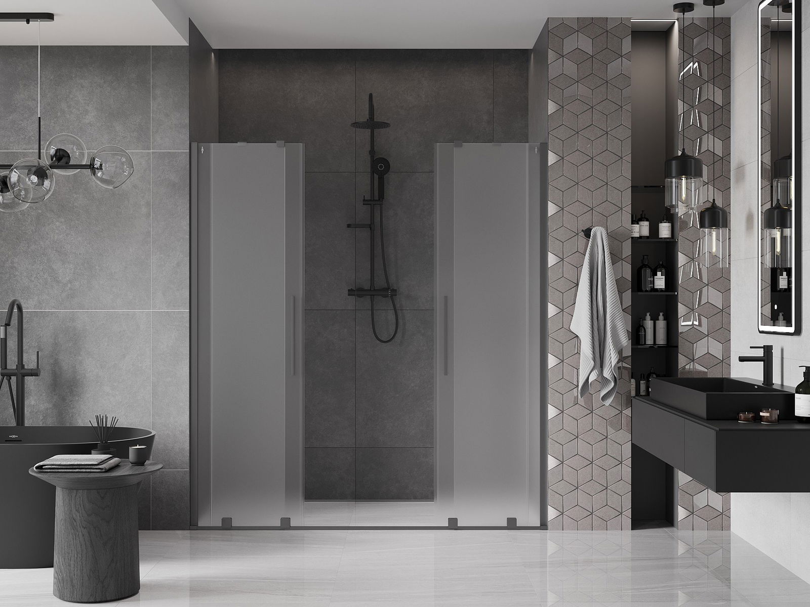 Mexen Velar Duo drzwi prysznicowe rozsuwane 180 cm, szron, gun metal - 871-180-000-32-95