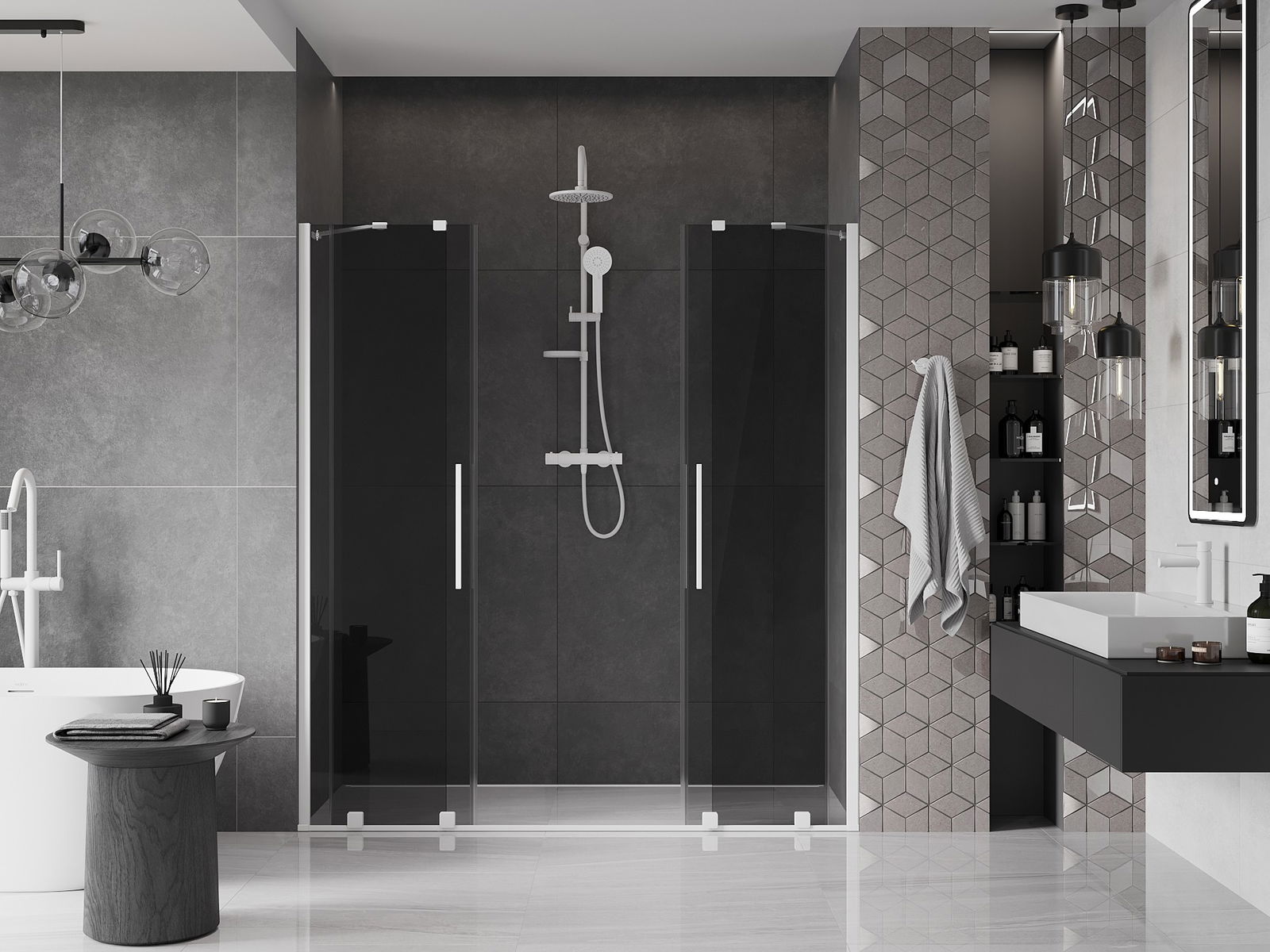 Mexen Velar Duo drzwi prysznicowe rozsuwane 170 cm, grafit, białe - 871-170-000-42-20