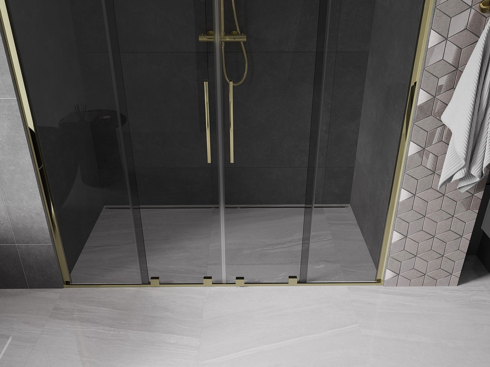Mexen Velar Duo drzwi prysznicowe rozsuwane 170 cm, grafit, złote - 871-170-000-42-50