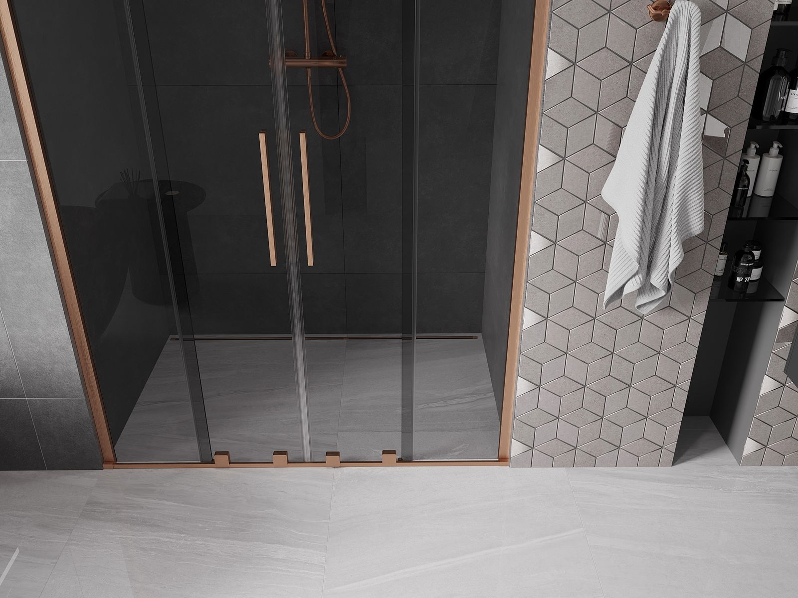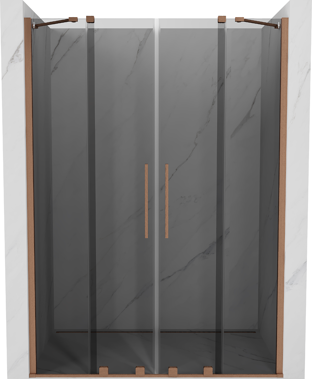 Mexen Velar Duo drzwi prysznicowe rozsuwane 150 cm, grafit, miedź szczotkowana - 871-150-000-42-65