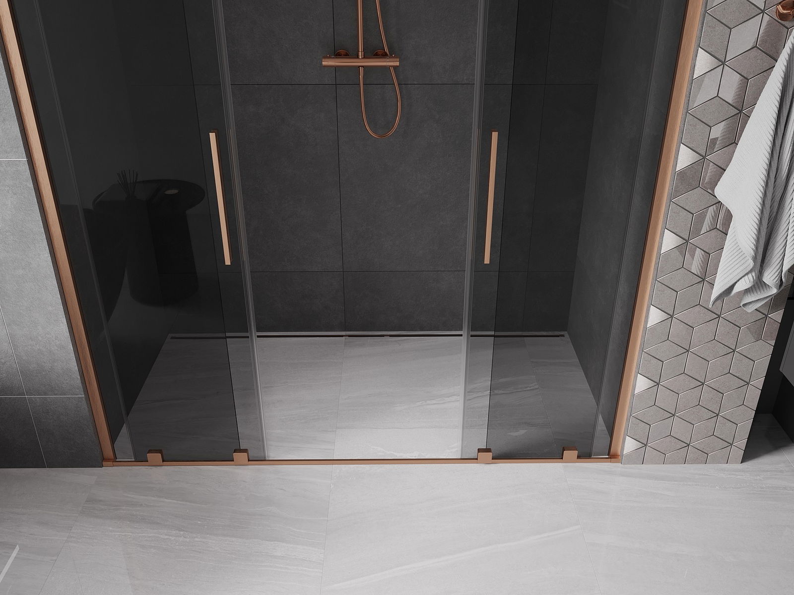 Mexen Velar Duo drzwi prysznicowe rozsuwane 180 cm, grafit, miedź szczotkowana - 871-180-000-42-65