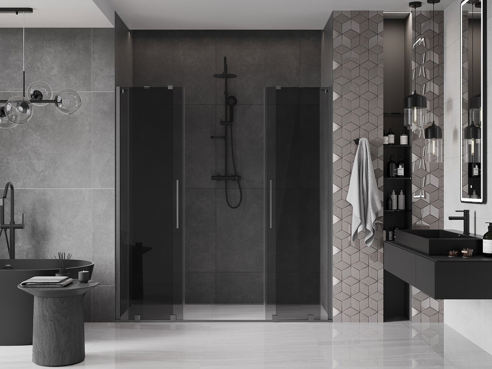 Mexen Velar Duo drzwi prysznicowe rozsuwane 200 cm, grafit, gun gray szczotkowany - 871-200-000-42-66