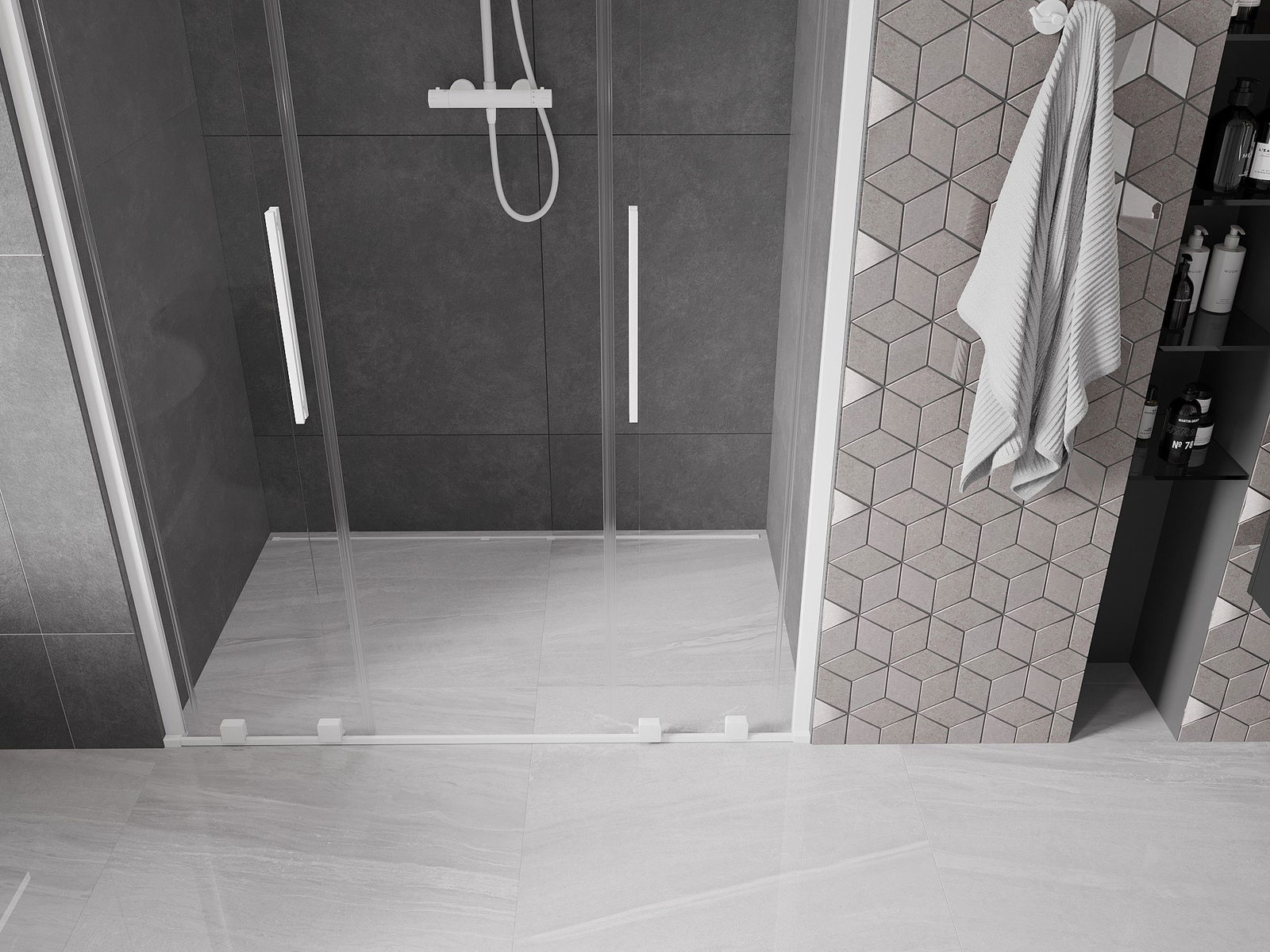 Mexen Velar L Duo drzwi prysznicowe rozsuwane 150 cm, transparent, białe - 871-150-003-02-20