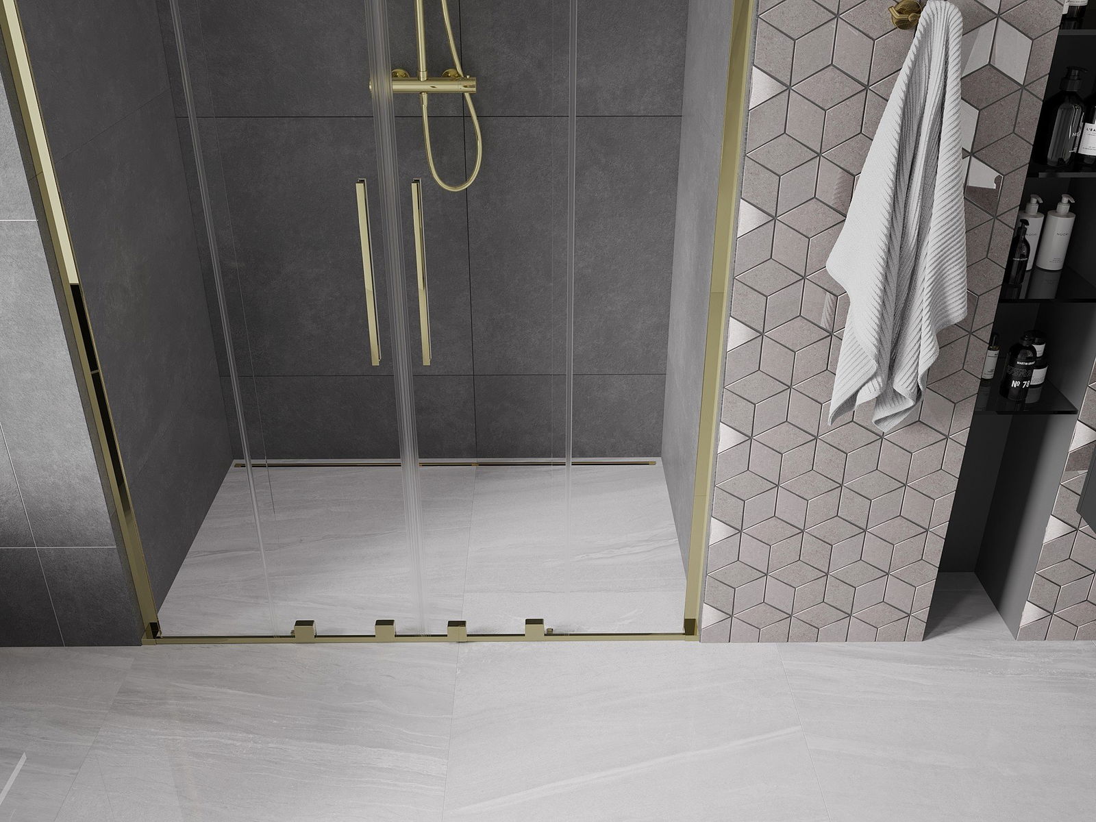 Mexen Velar L Duo drzwi prysznicowe rozsuwane 140 cm, transparent, złote - 871-140-003-02-50