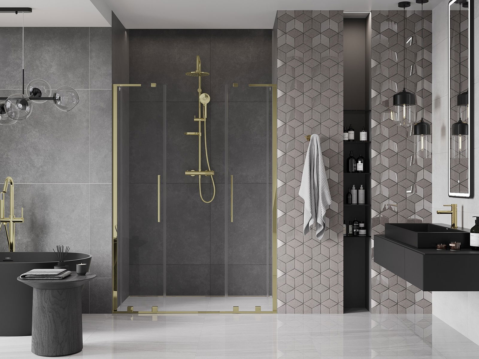 Poręczny i wygodny uchwyt został wykonany ze stali nierdzewnej. Modny kształt w połączeniu z wykończeniem dopasowanym do koloru profili nadaje całości nowoczesnego i stylowego wyglądu, podkreślając estetykę każdej łazienki.