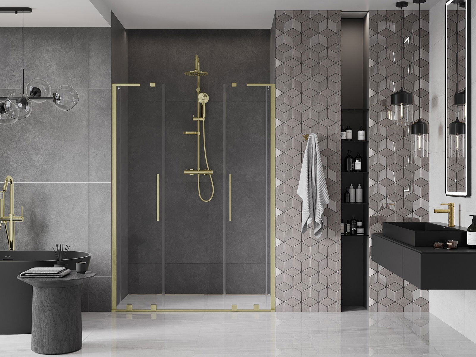 Mexen Velar L Duo drzwi prysznicowe rozsuwane 140 cm, transparent, złote szczotkowane - 871-140-003-02-55