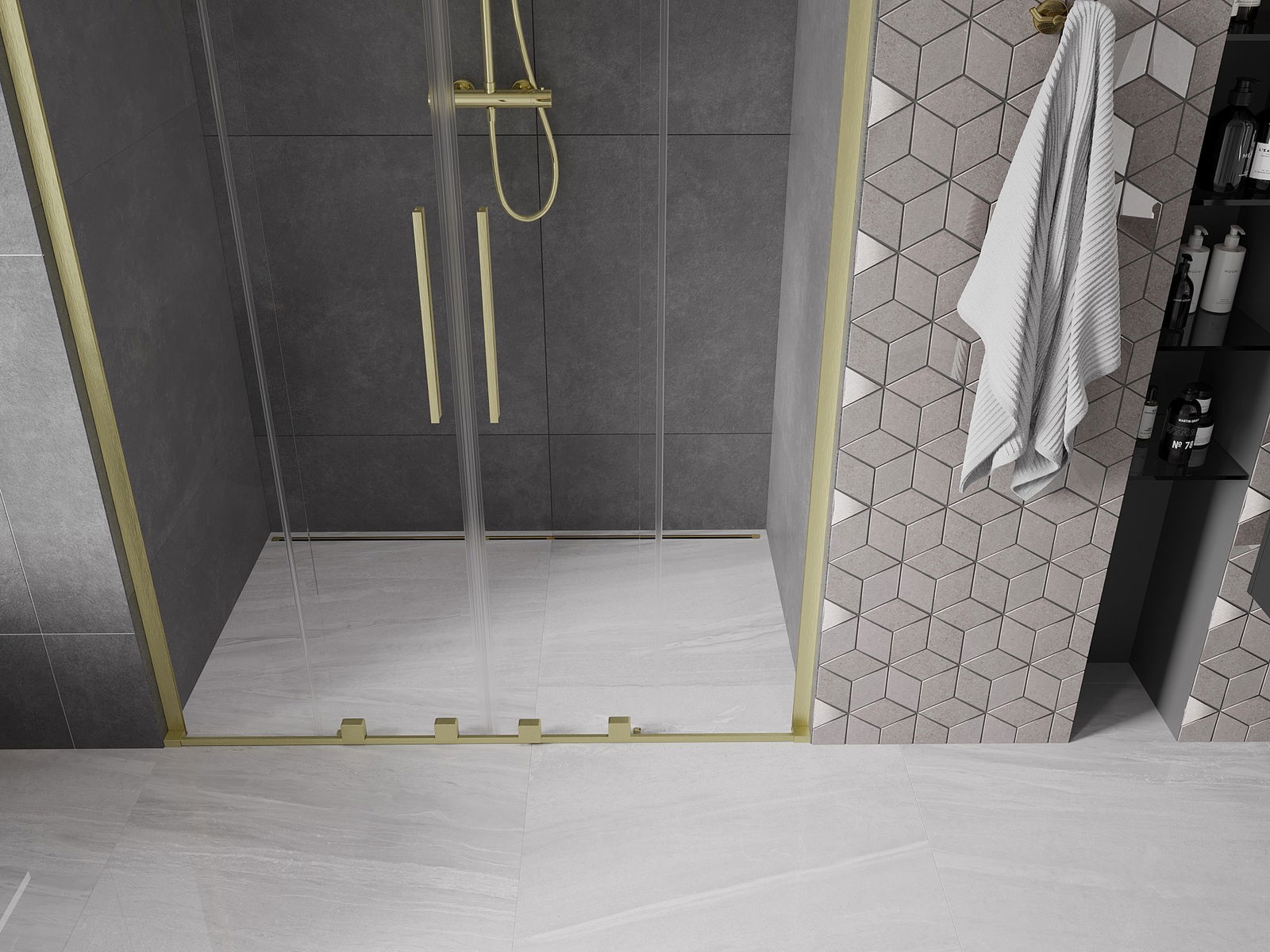 Poręczny i wygodny uchwyt został wykonany ze stali nierdzewnej. Modny kształt w połączeniu z wykończeniem dopasowanym do koloru profili nadaje całości nowoczesnego i stylowego wyglądu, podkreślając estetykę każdej łazienki.