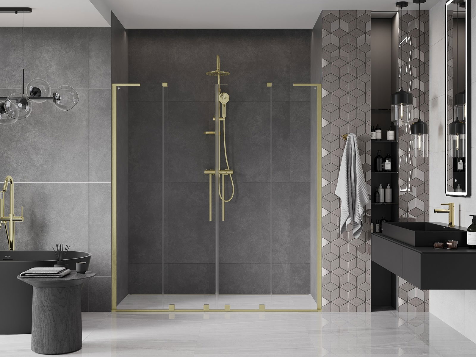 Mexen Velar L Duo drzwi prysznicowe rozsuwane 200 cm, transparent, złote szczotkowane - 871-200-003-02-55